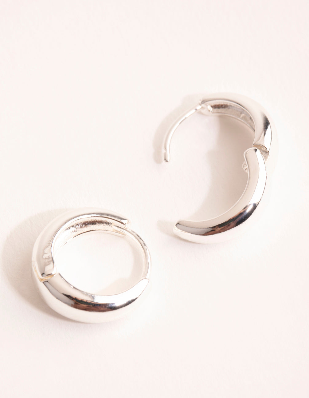 Silver Plain Chubby Huggie Earrings Silver Plain Chubby Huggie Earrings Silver Plain Chubby Huggie Earrings
