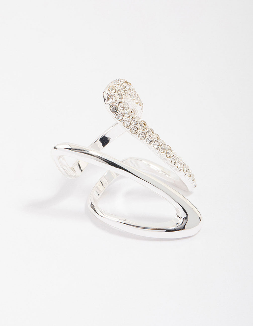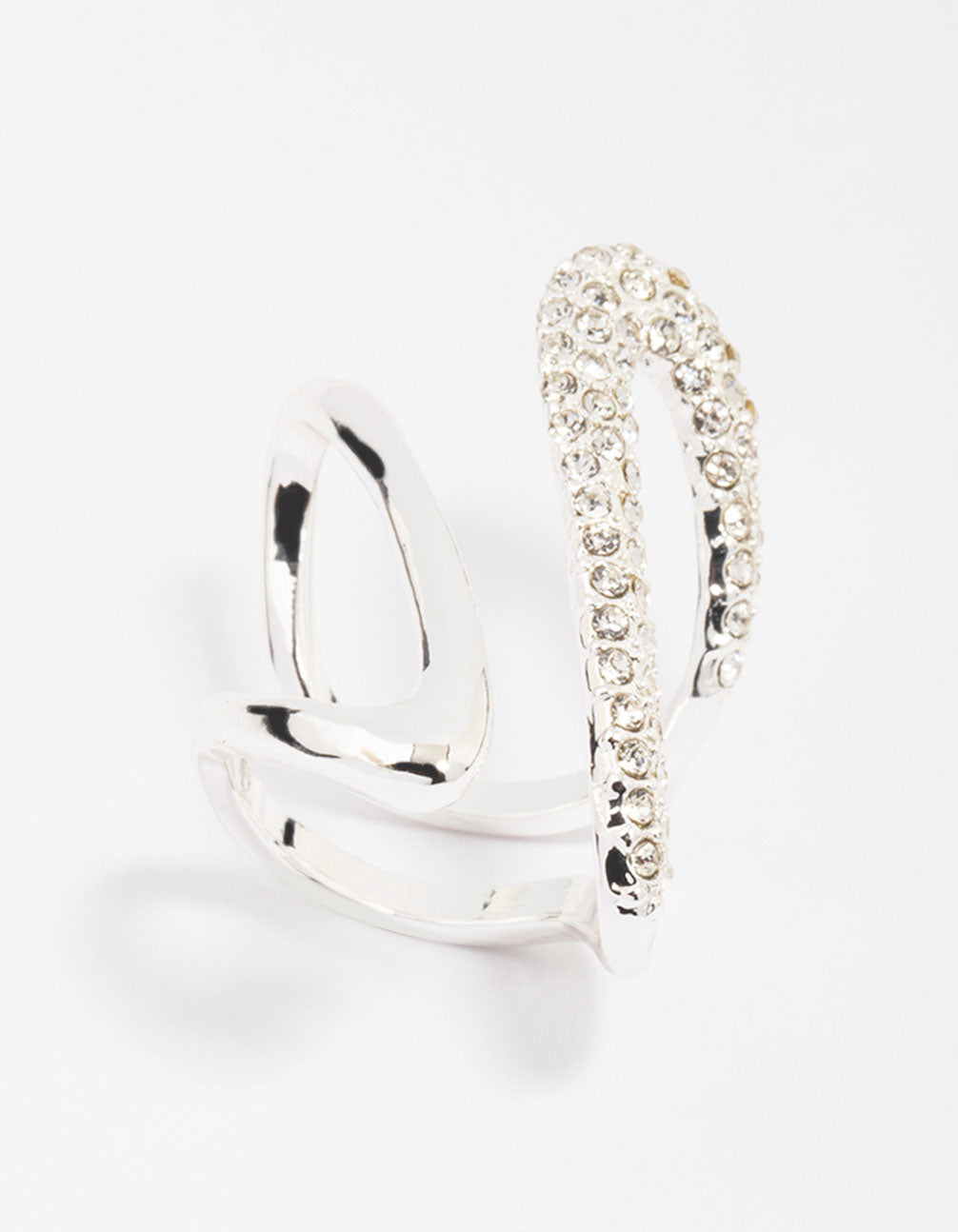 This unique ring features a swirling design, encrusted with delicate crystals for a luxe finish.