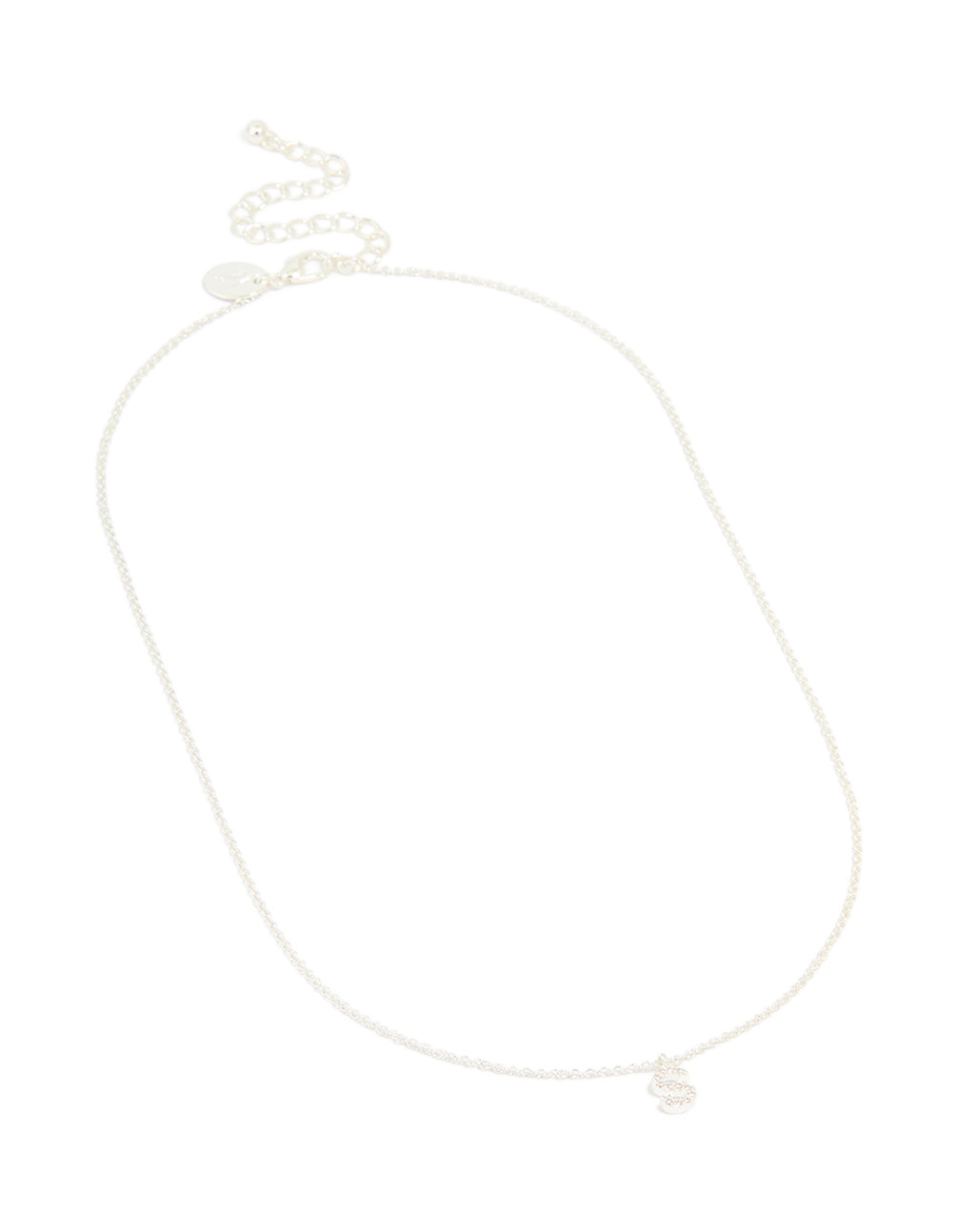 Silver Plated Brass Cubic Zirconia Letter S Necklace
