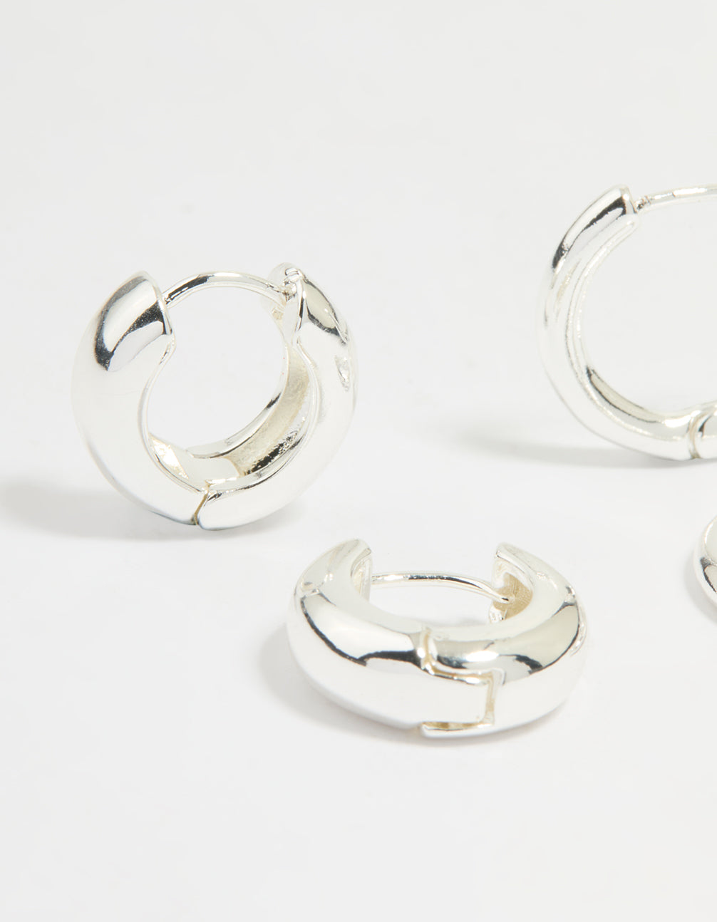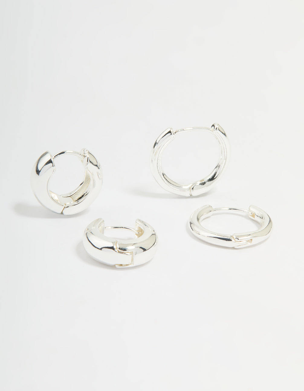 Silver Plated Brass Small & Medium Huggie Earrings 2-Pack