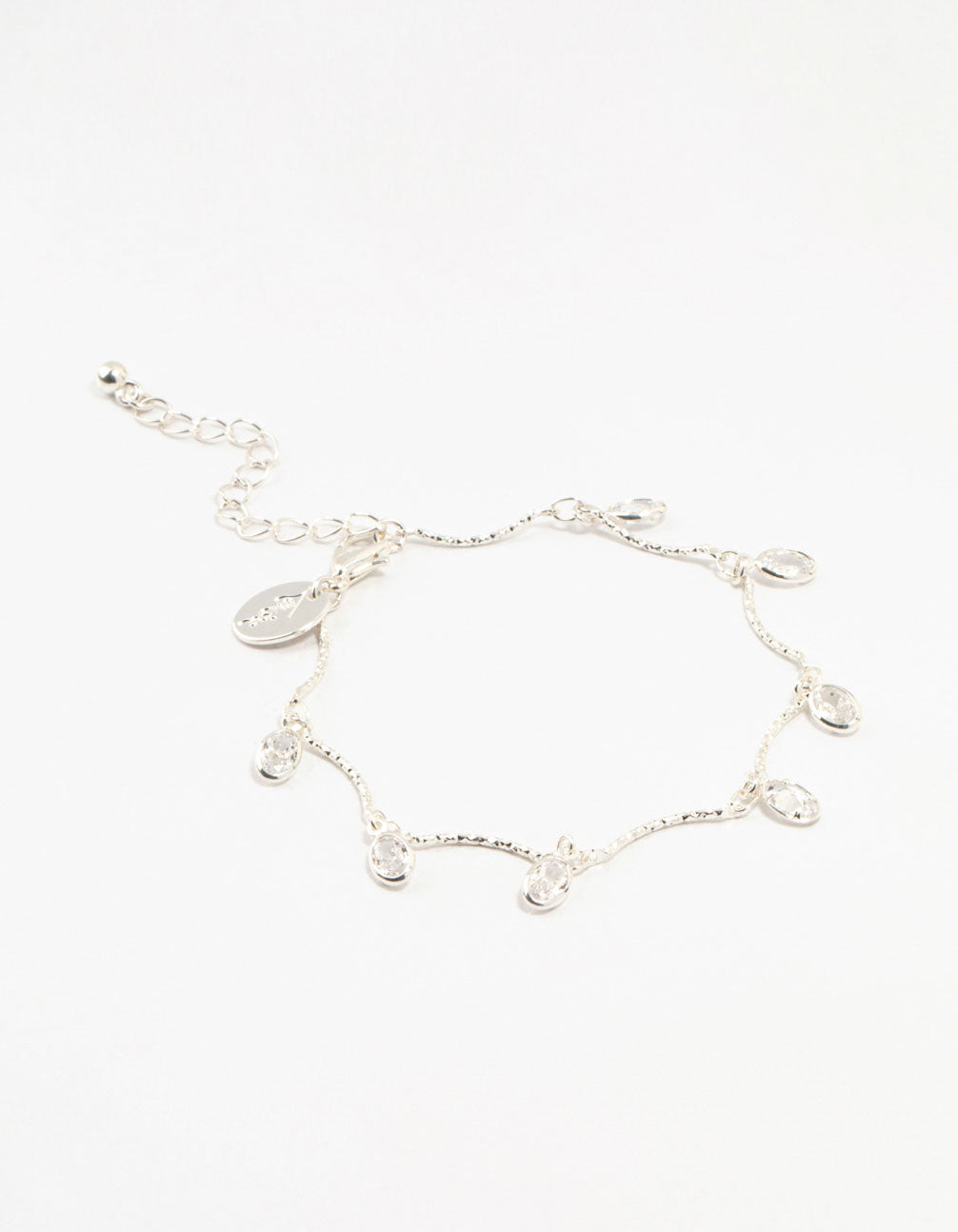 Silver Plated Brass Vine Crystal Charm Bracelet