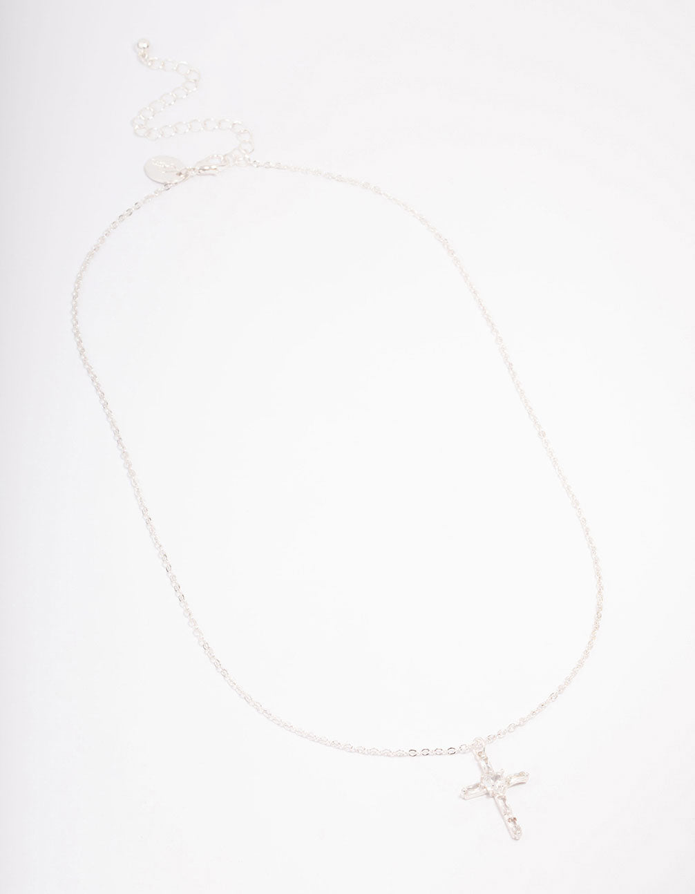 Add a timeless touch to your outfit with this signature pendant necklace. This classic chain is plated with real silver and features a simple cross motif, encrusted with baguette-cut, cubic zirconia crystals for a luxe finish.