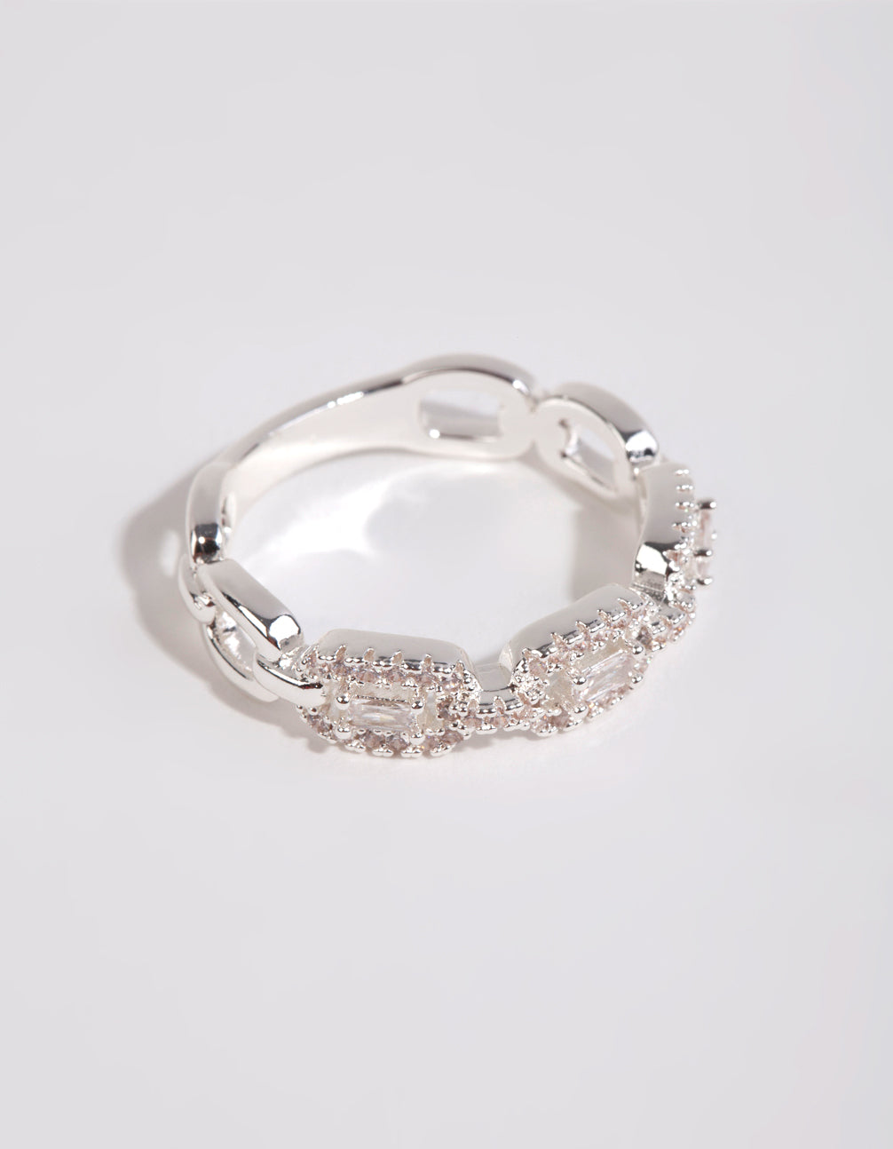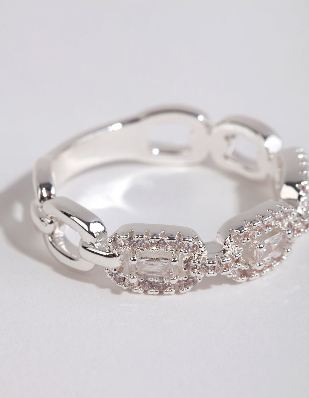 Silver Plated Cubic Zirconia Chain Ring