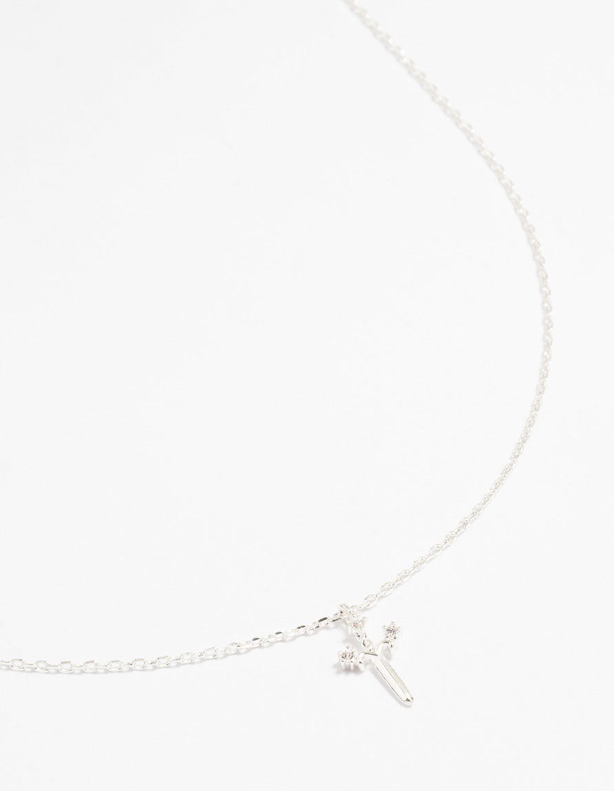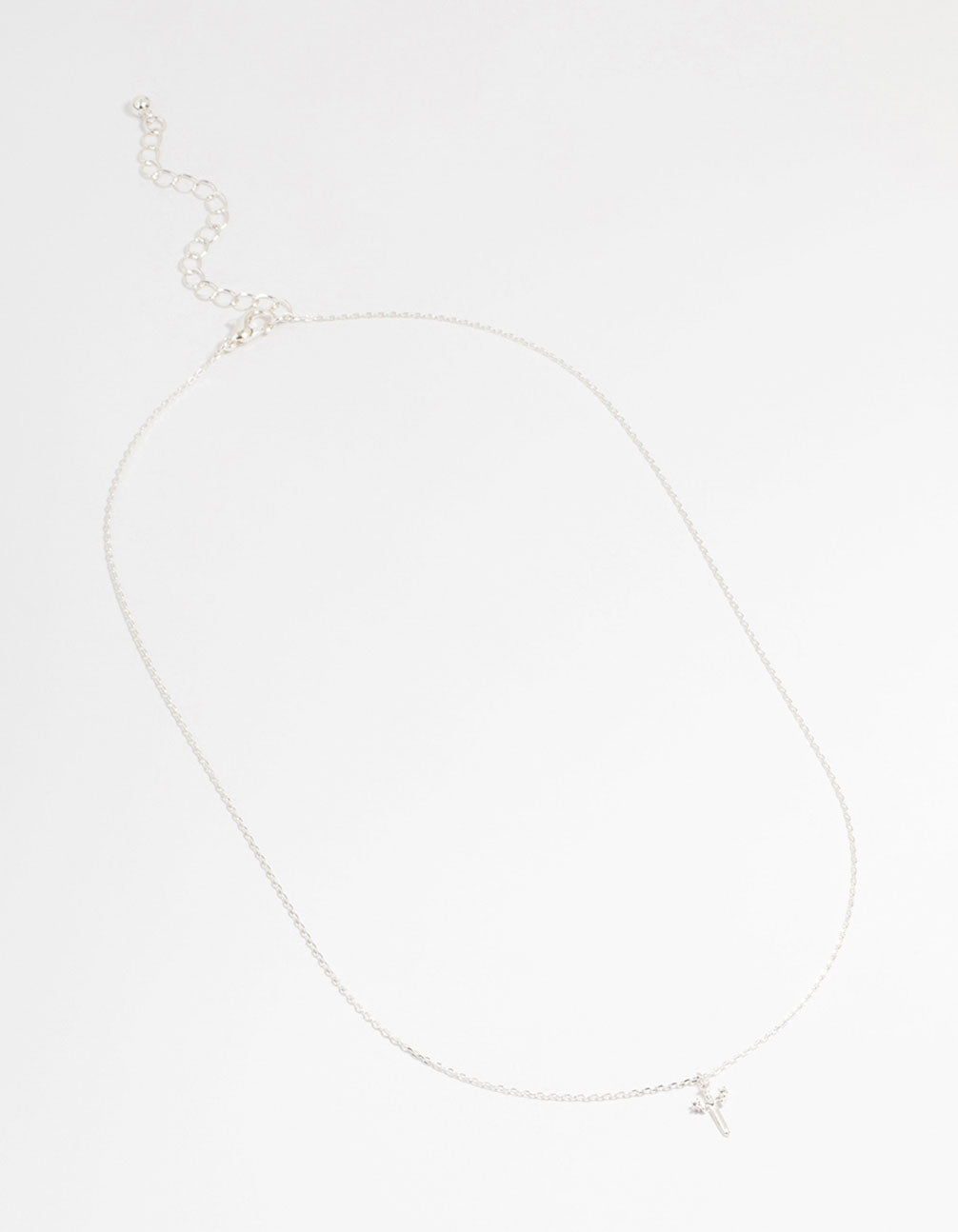 Silver Plated Cubic Zirconia Mini Cross Pendant Necklace