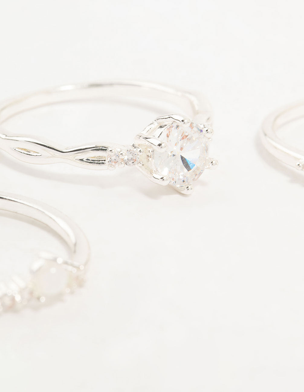 Add sleek silver tones and sparkle to your ring stack with this stunning pack! Featuring three silver-plated rings with cubic zirconia accents, it's perfect for a glam look.