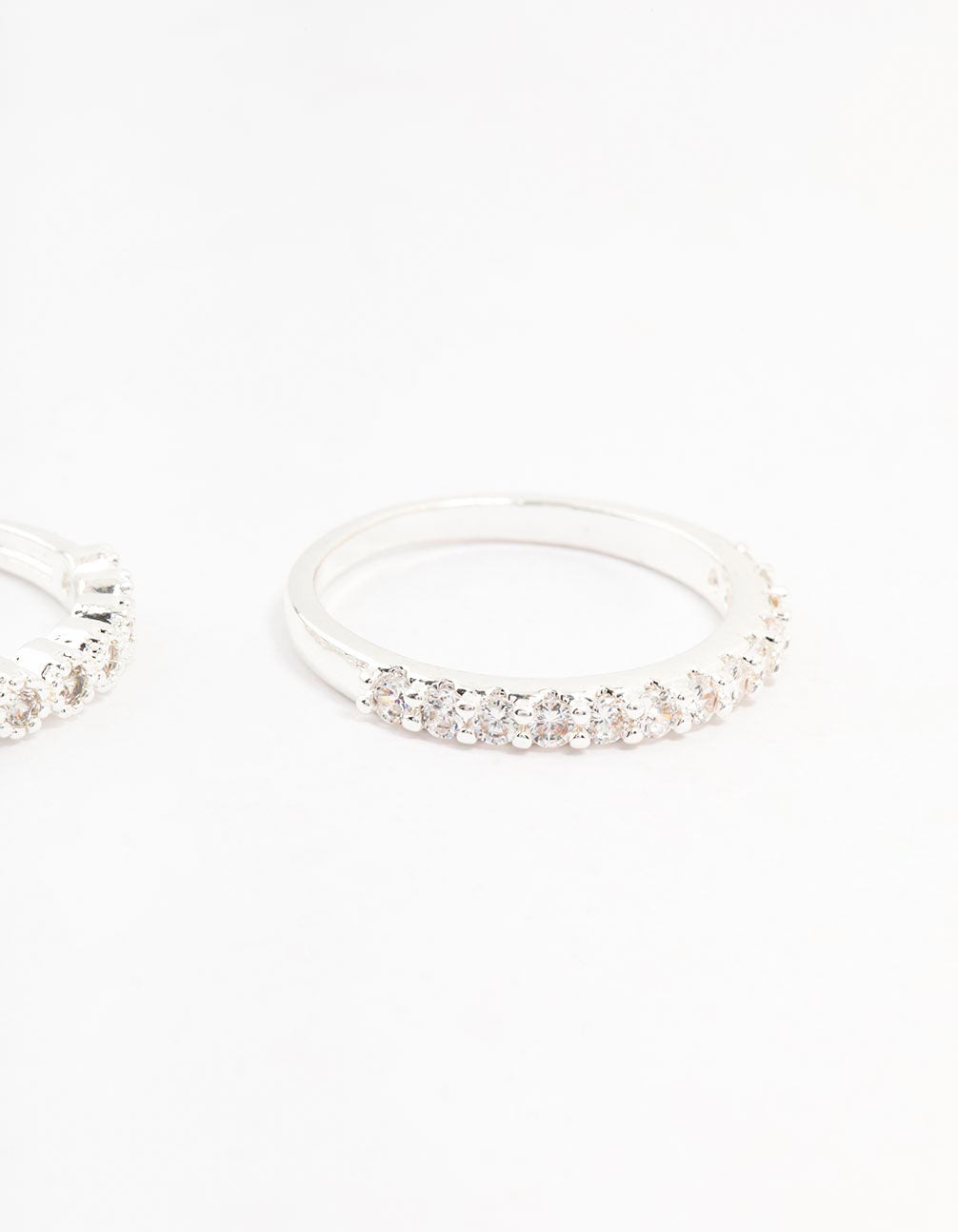 Silver Plated Fine Round Cubic Zirconia Stacking Rings 3-Pack
