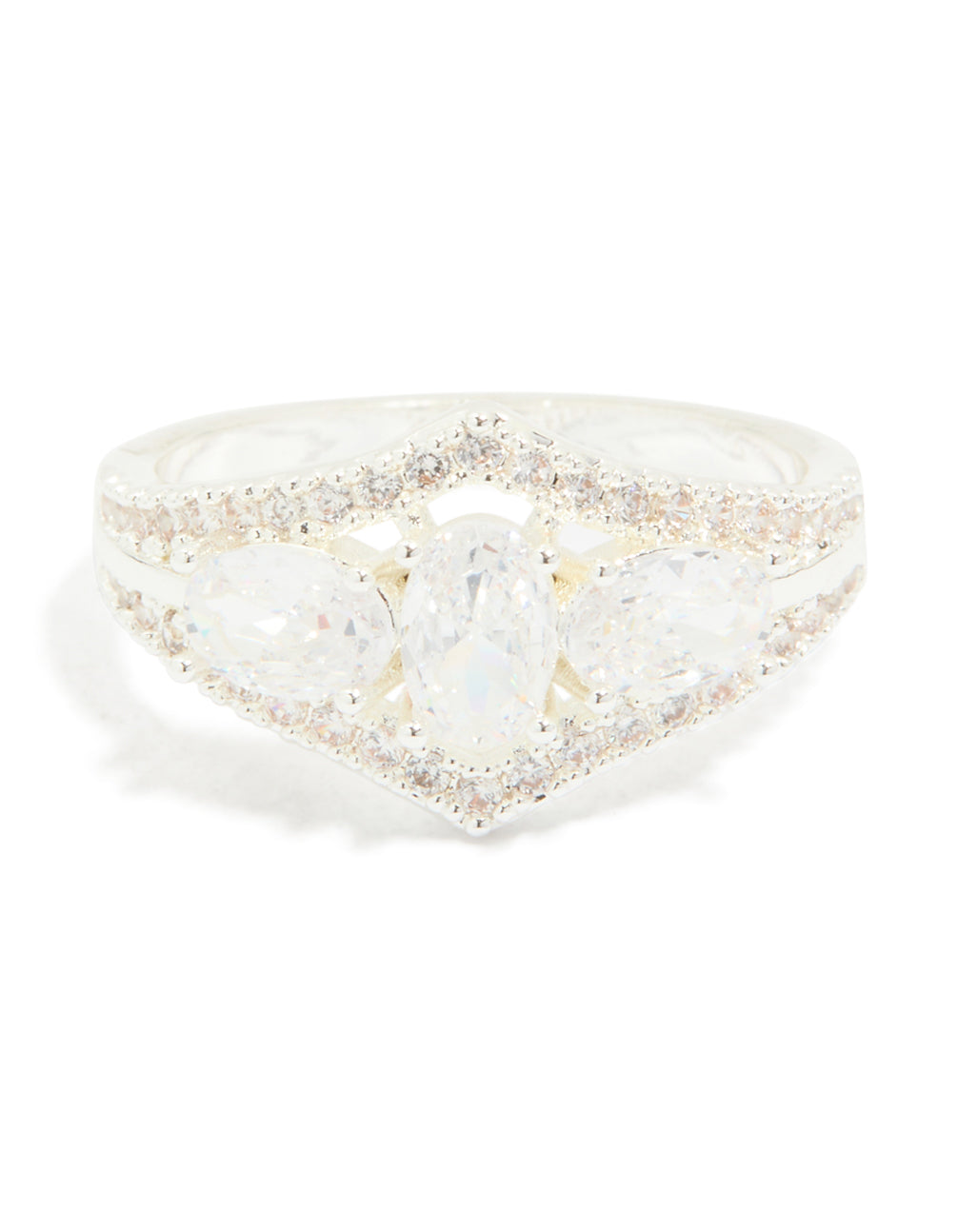 Silver Plated Multi-Shaped Cubic Zirconia 3-Stone Ring