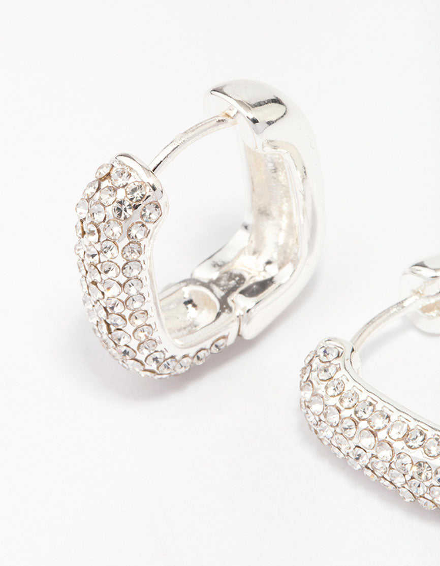 Meet your new pair of everyday hoops! These hoop earrings are plated with real silver and feature a square-shaped silhouette, encrusted with mini diamantes for a glamorous touch.