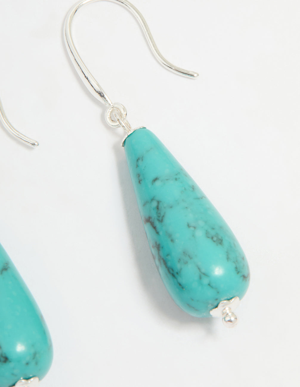 Silver Plated Turquoise Stone Sleek Drop Earrings
