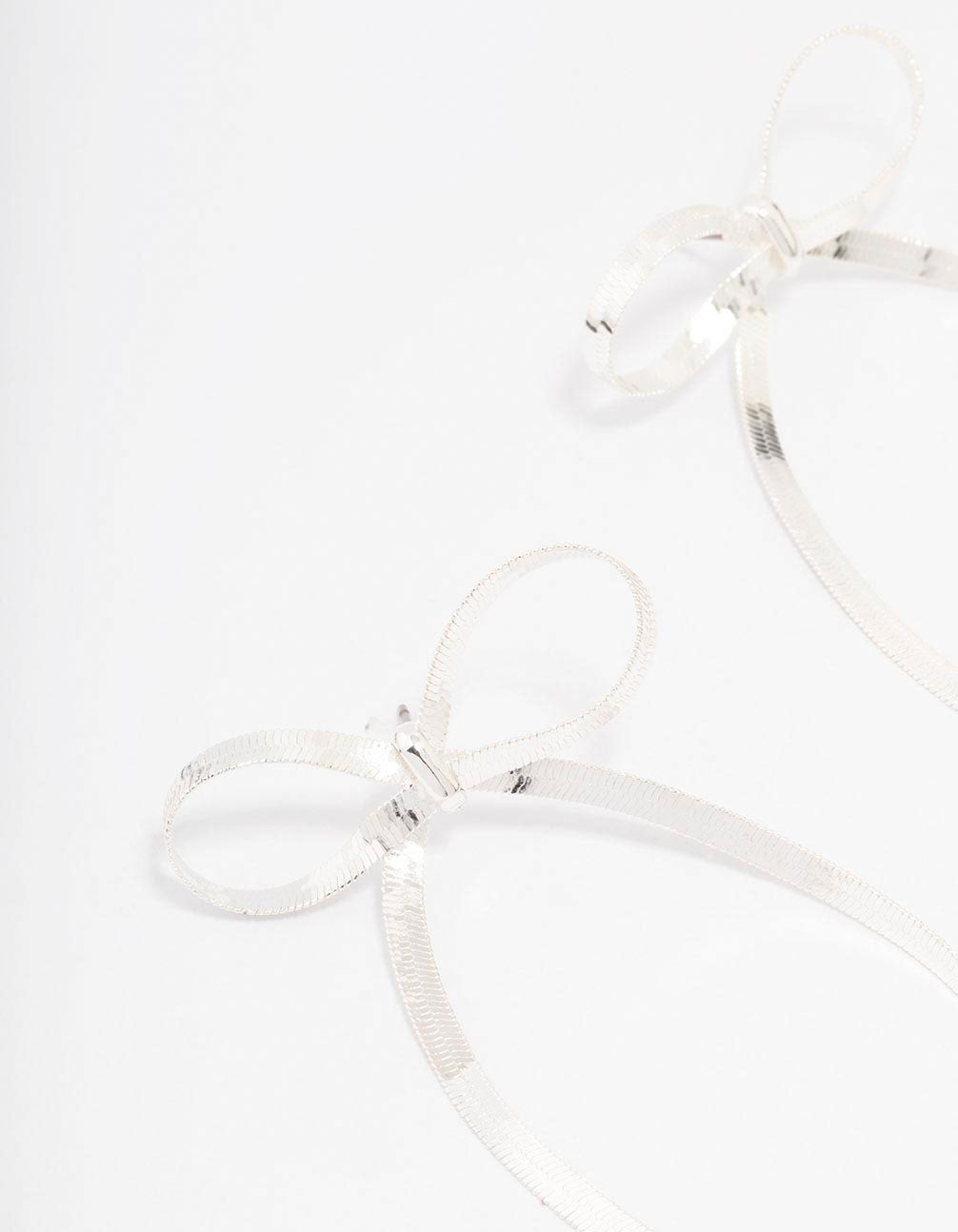 These refined drop earrings feature a stunning, silver-toned setting designed in the shape of a bow.