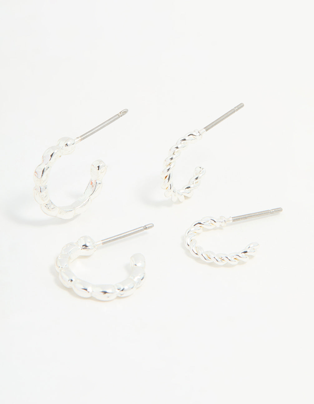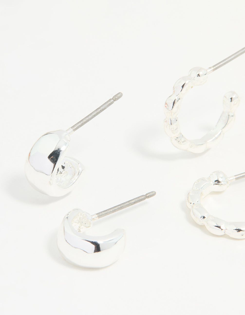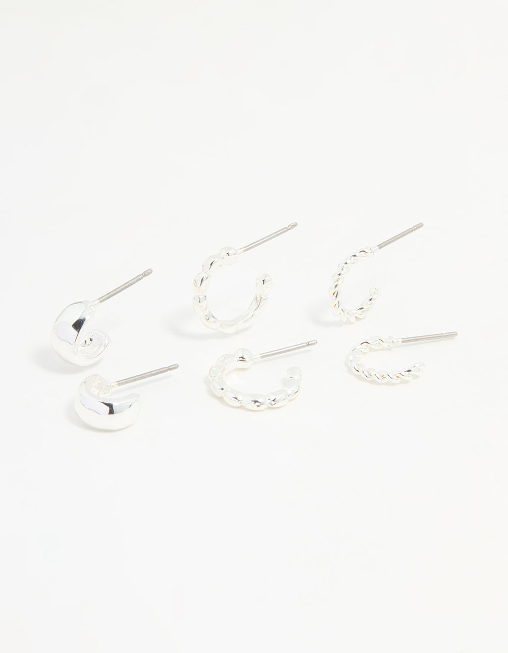 Upgrade your ear game with the Silver Textured Huggie Earrings 3-Pack! Each pair has a unique textured finish, perfect for adding sophistication to any outfit. Mix and match or wear solo for a chic, minimalist look.