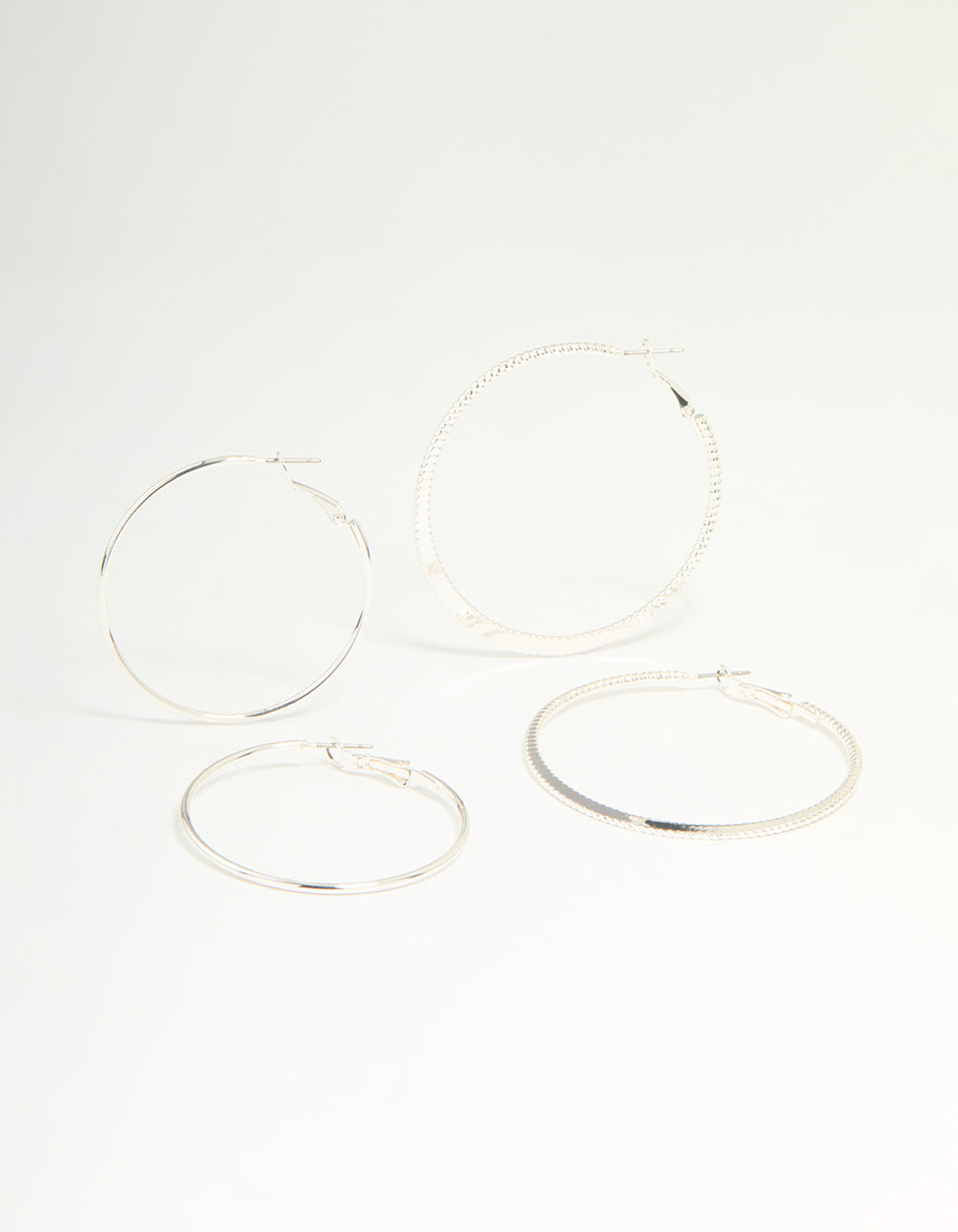 Silver Textured & Plain Hoop Earrings 2-Pack Silver Textured & Plain Hoop Earrings 2-Pack Silver Textured & Plain Hoop Earrings 2-Pack