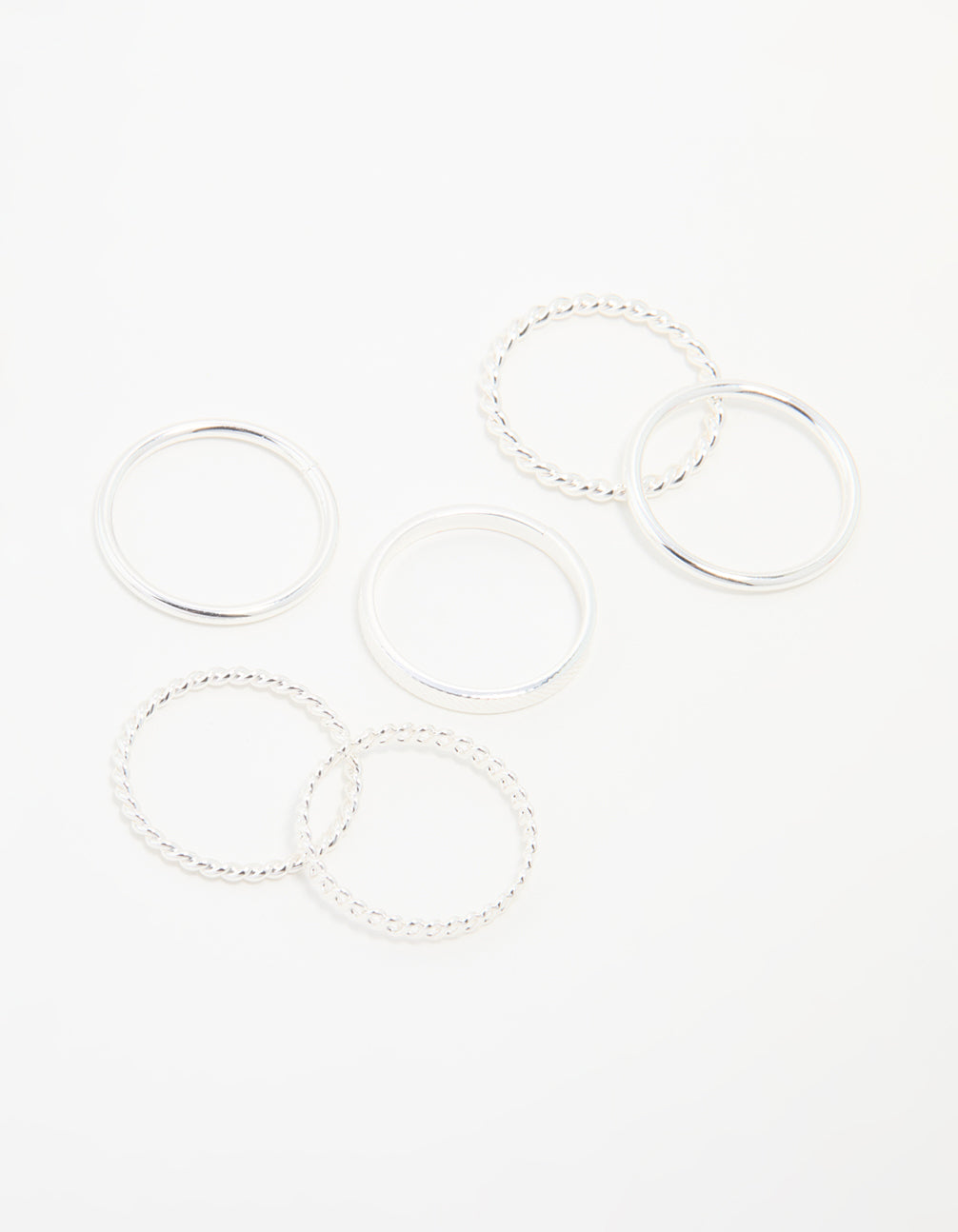 Silver Thin Twisted Stacking Rings 6-Pack Silver Thin Twisted Stacking Rings 6-Pack