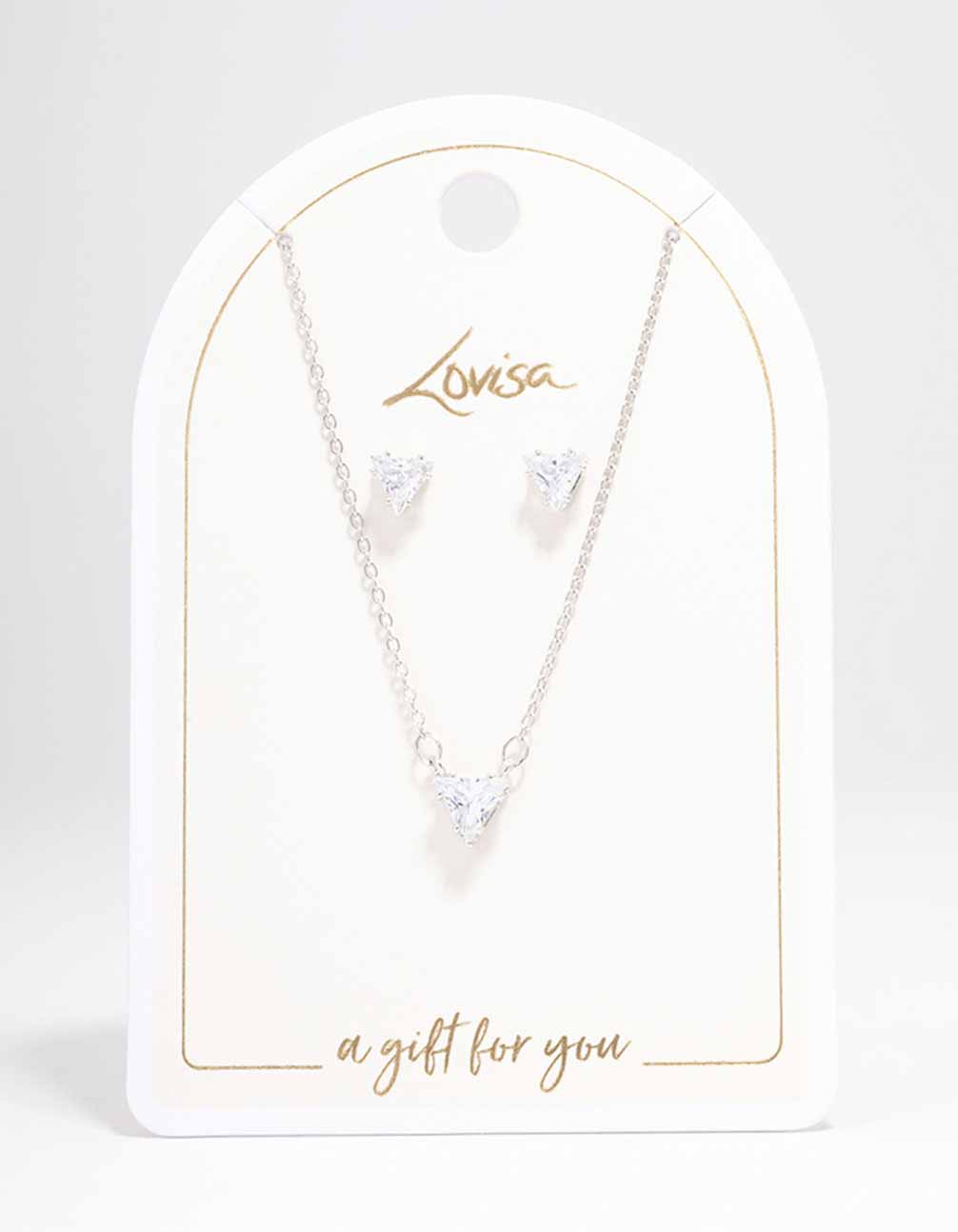 Silver Triangular Diamante Necklace & Earring Jewellery Set