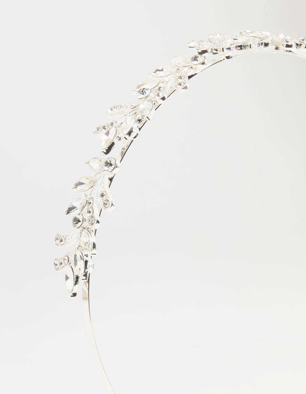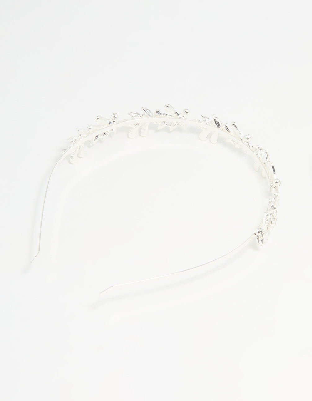 Dazzle with the Silver Winding Leaves Headband! This enchanting accessory features delicate silver leaves on a winding vine design, perfect for brides who want an enchanting finish to their bridal look.