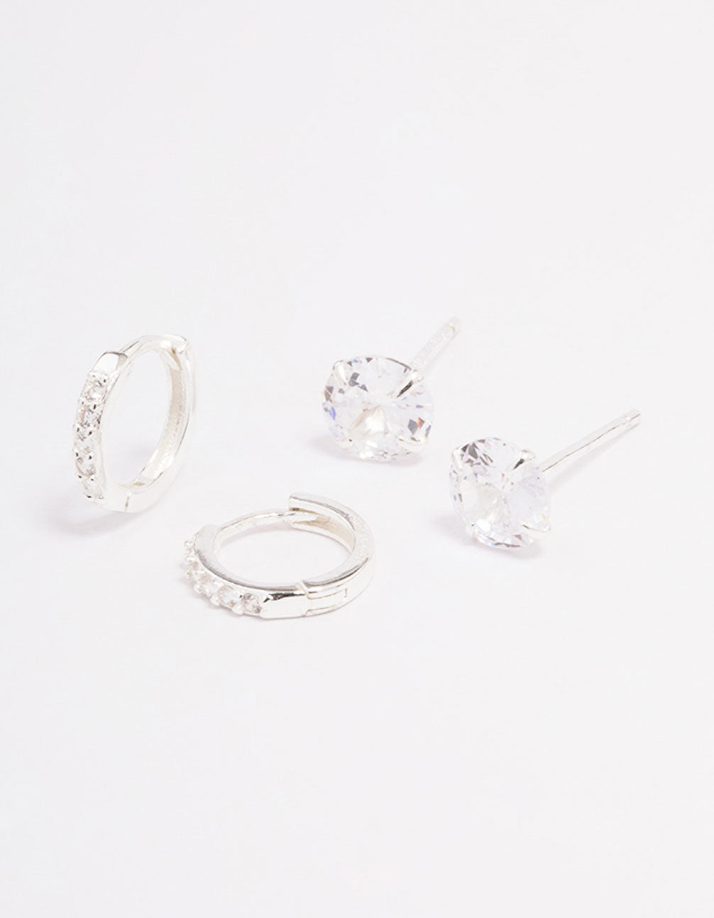 Sterling Silver Cubic Zirconia Stud & Huggie Earring Set