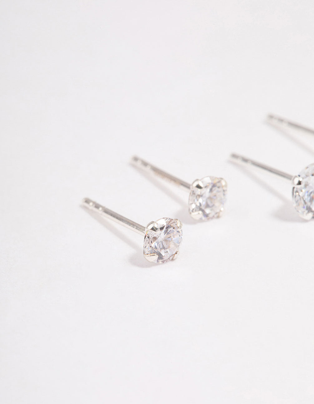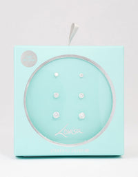 This gift box contains three sets of stud earrings featuring varying sizes of cubic zirconia embellishments.