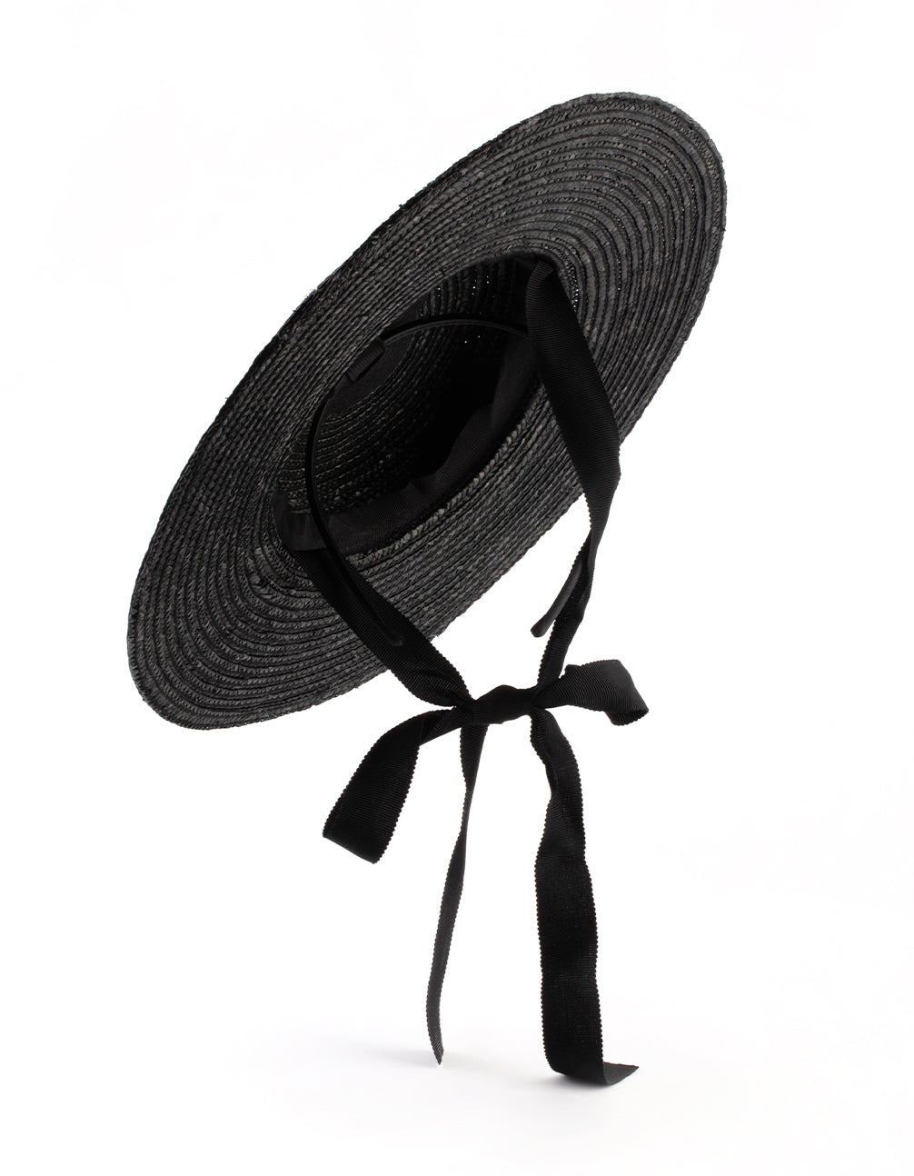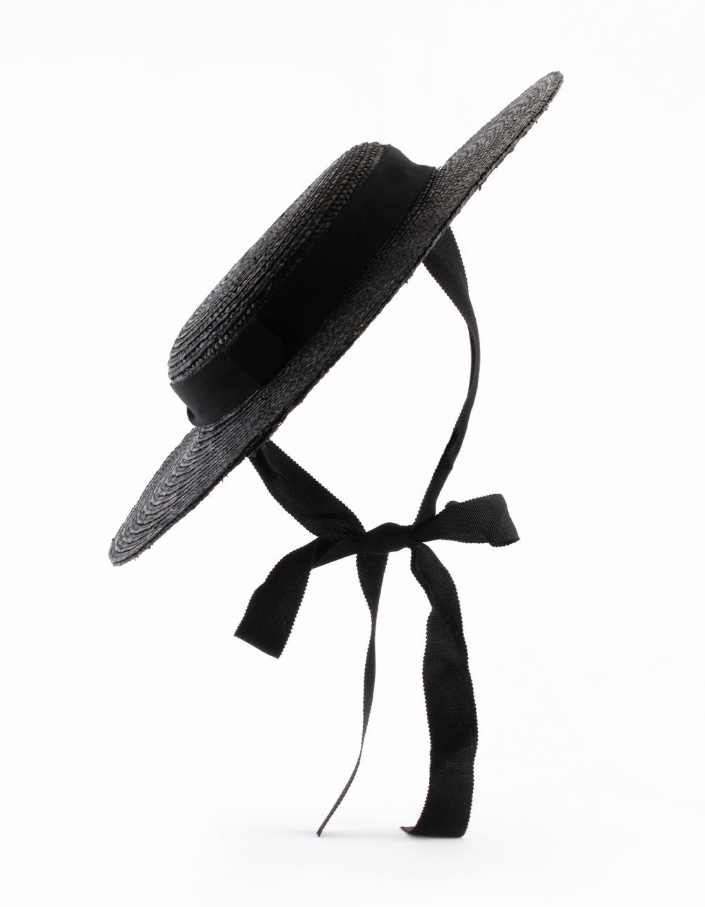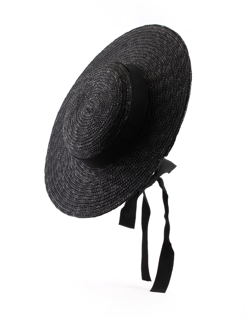 Black Ribbon Tie Braided Boater Hat