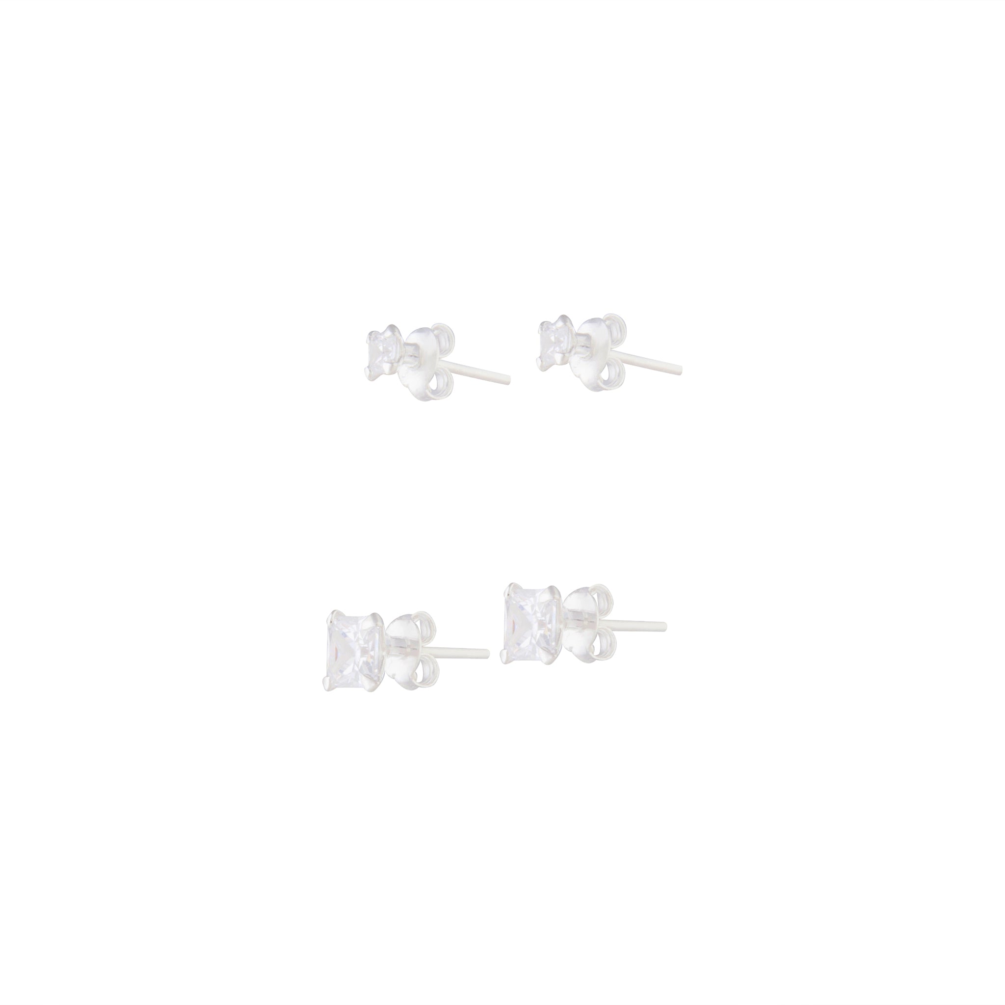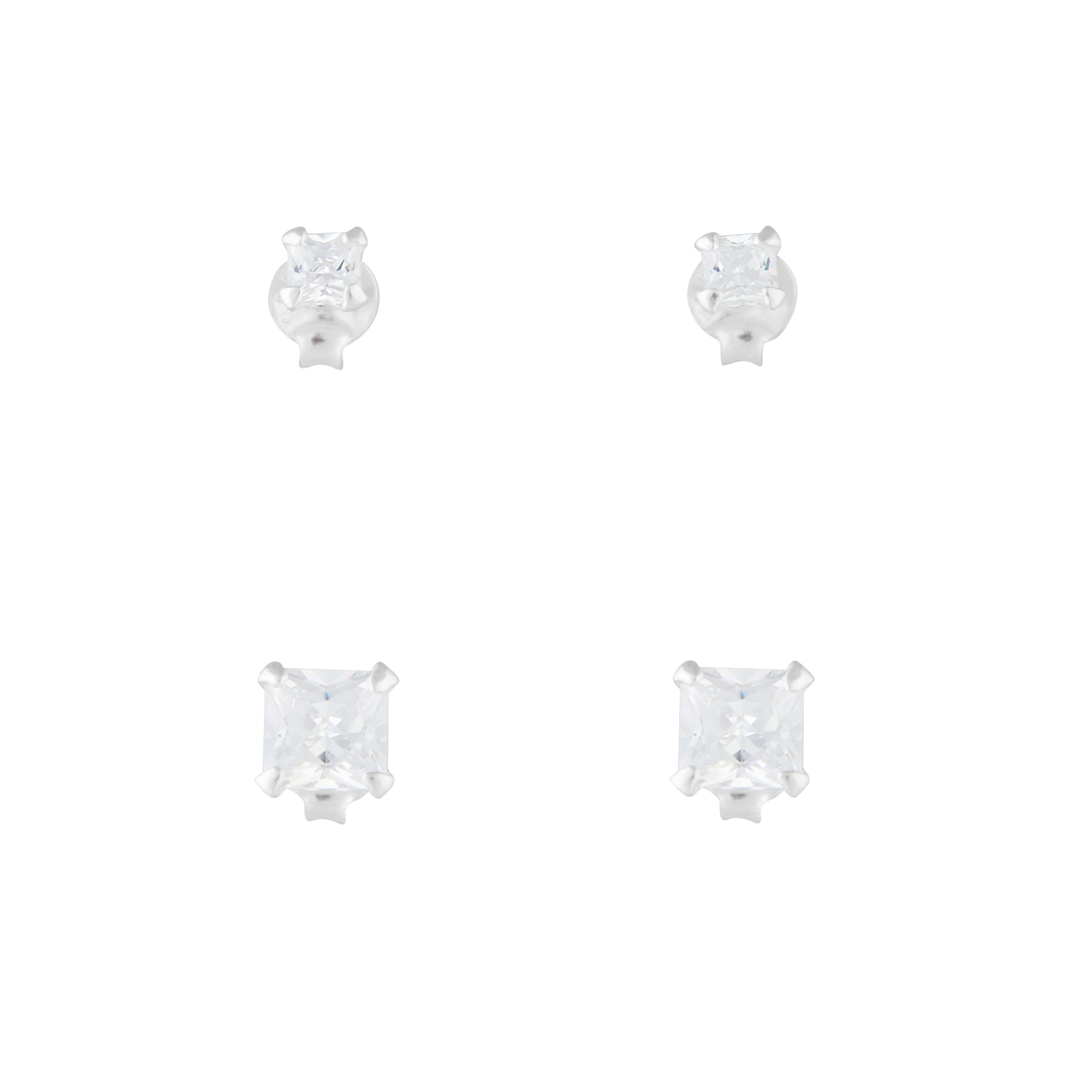 Sterling Silver Square Cubic Zirconia Studs