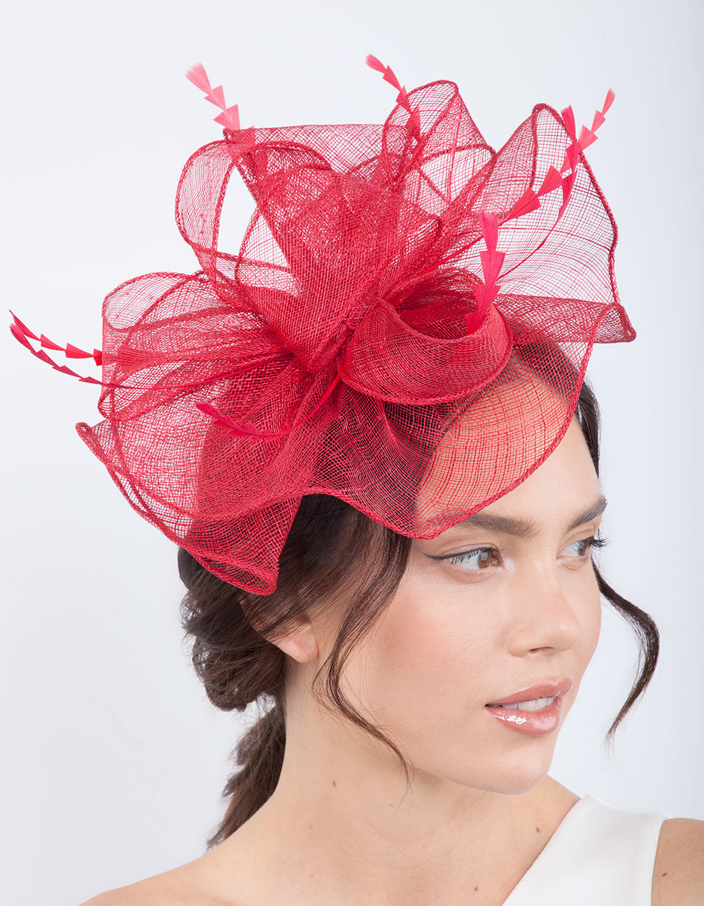 Whether you are heading to brunch, a wedding, the races or just wanting to look glamorous for a party, this fascinator is a vibrant final touch to complete your ensemble! This red triangle feathered fascinator is a versatile and fashion forward hair accessory.