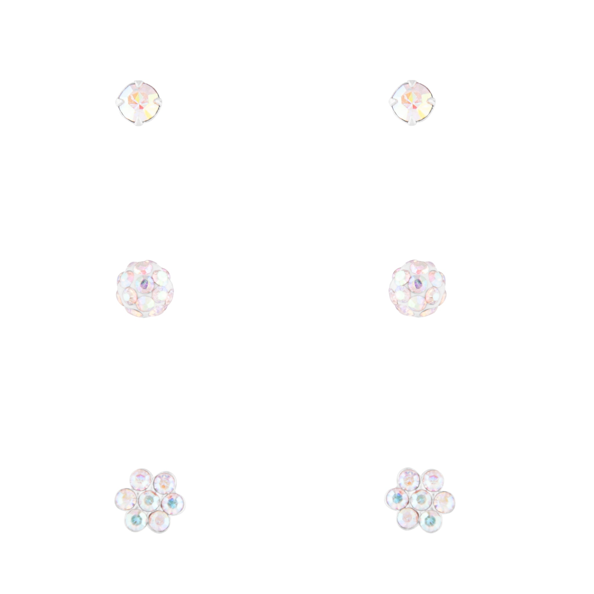 This twinkling trio will elevate your look through the sparkling diamante detail of the single stone, bead and flower studs.