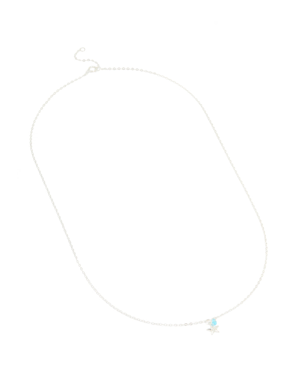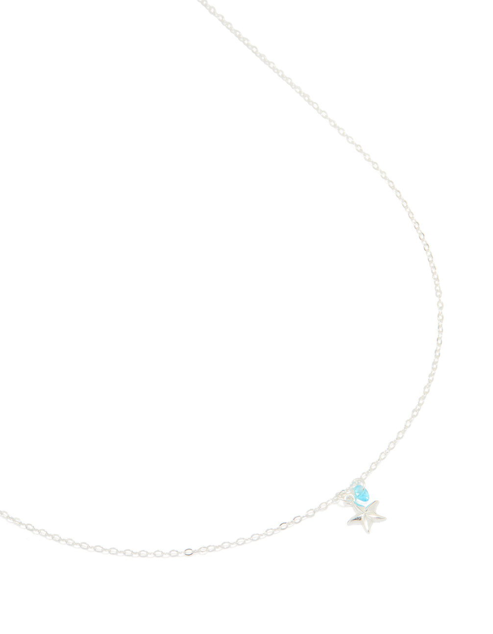 Sterling Silver Blue Cubic Zirconia & Starfish Pendant Necklace