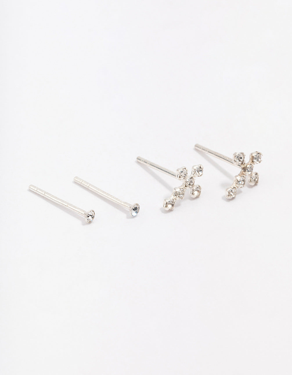 Sterling Silver Cubic Zirconia Cross Stud Earring Pack