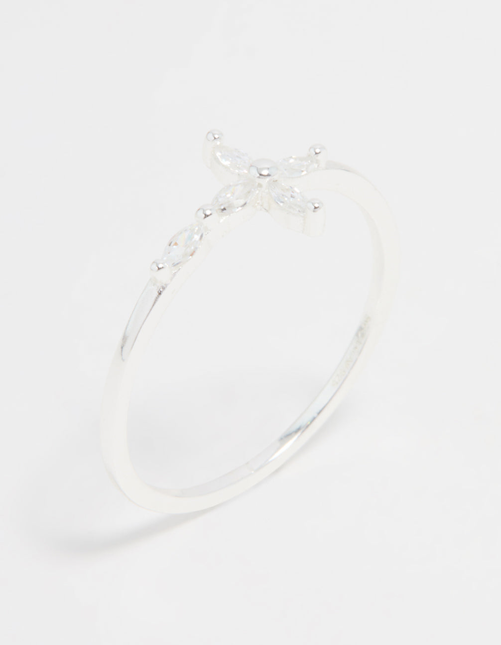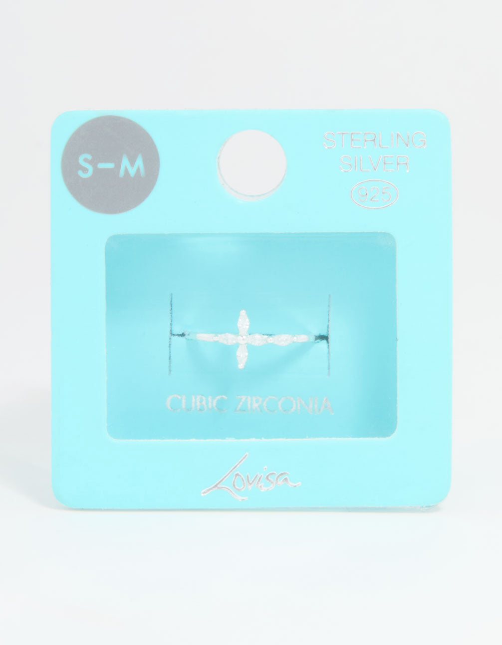 Sterling Silver Cubic Zirconia Marquise Cross Ring