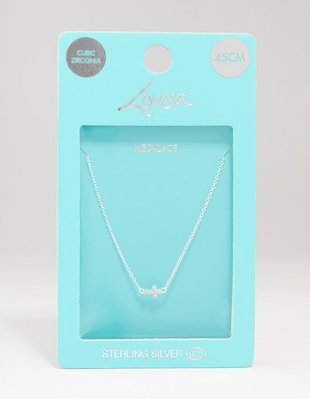 Sterling Silver Cubic Zirconia Mini Cross Pendant Necklace