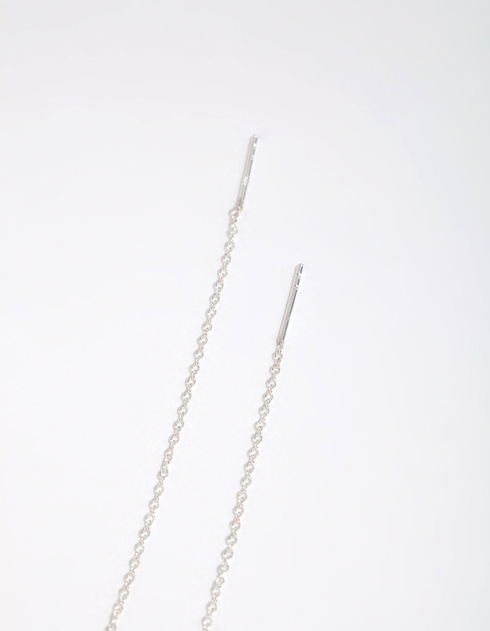 Sterling Silver Cubic Zirconia Teardrop Thread Through Earrings