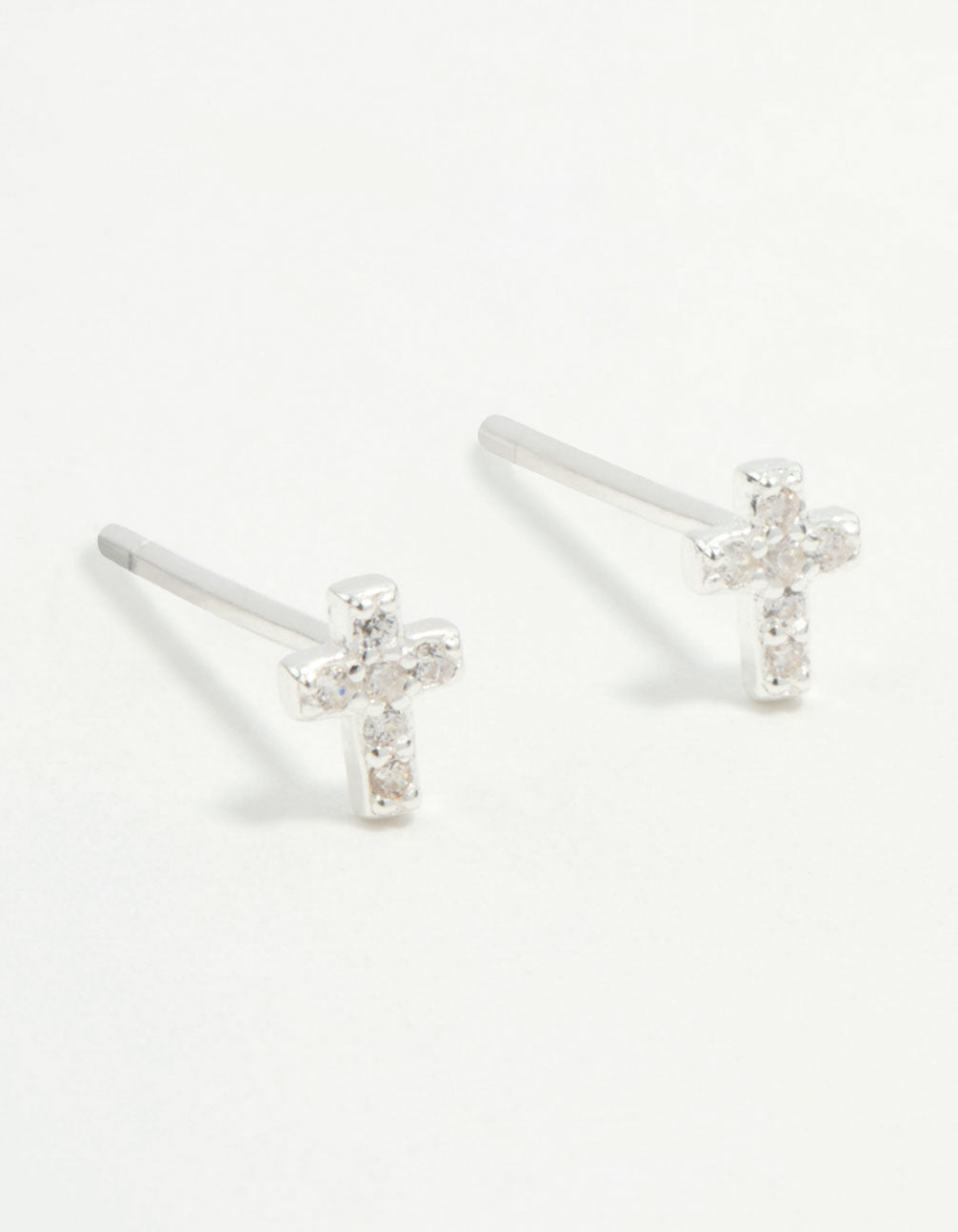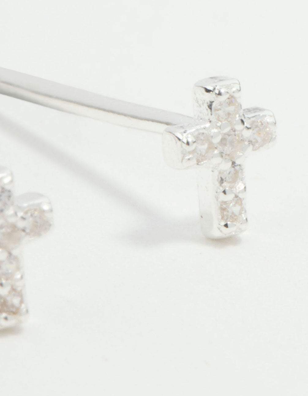 Upgrade your style with these Sterling Silver Mini Cubic Zirconia Cross Stud Earrings. Perfect for any outfit, these versatile studs add a touch of sparkle and elegance to your look.
