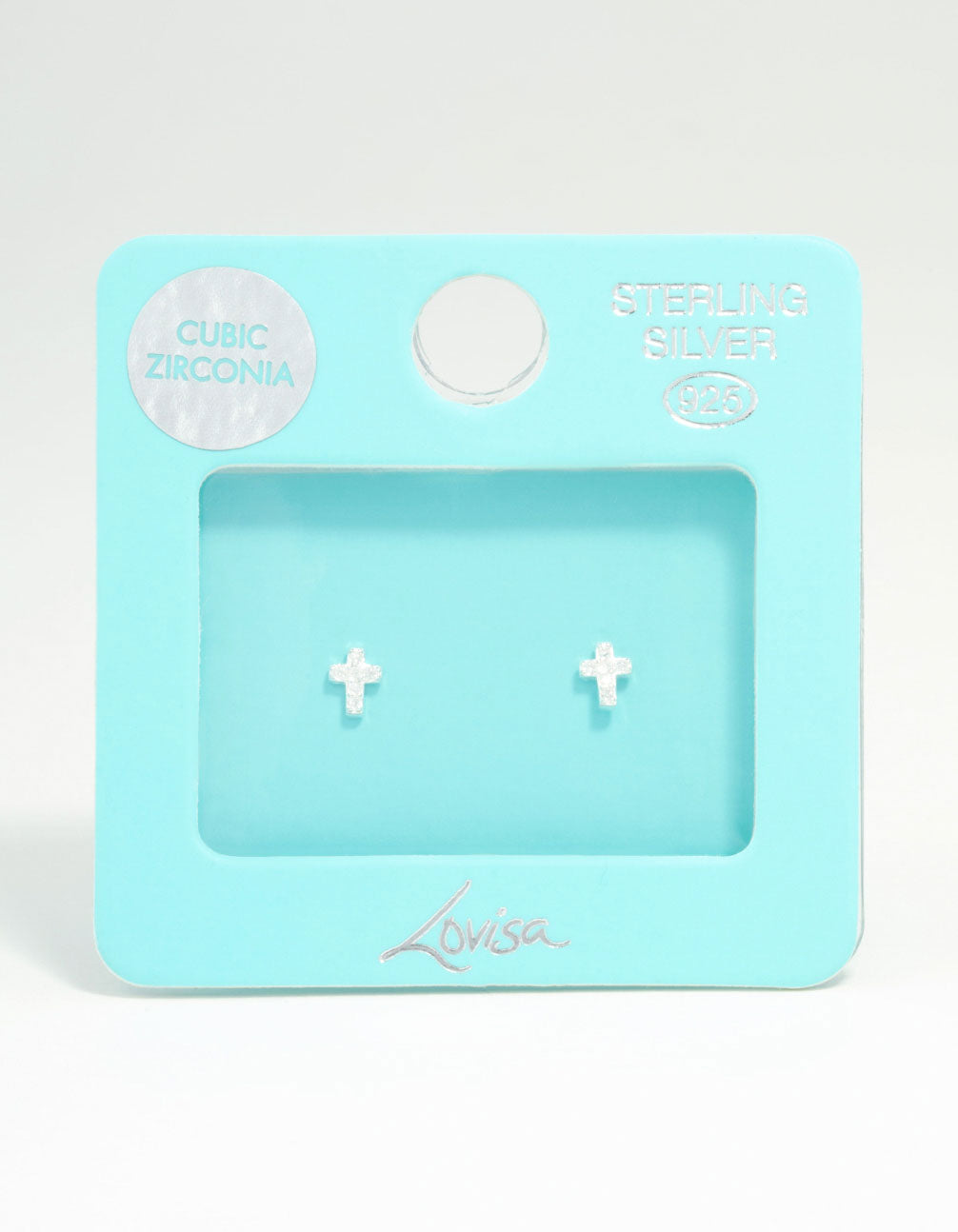 Sterling Silver Mini Cubic Zirconia Cross Stud Earrings