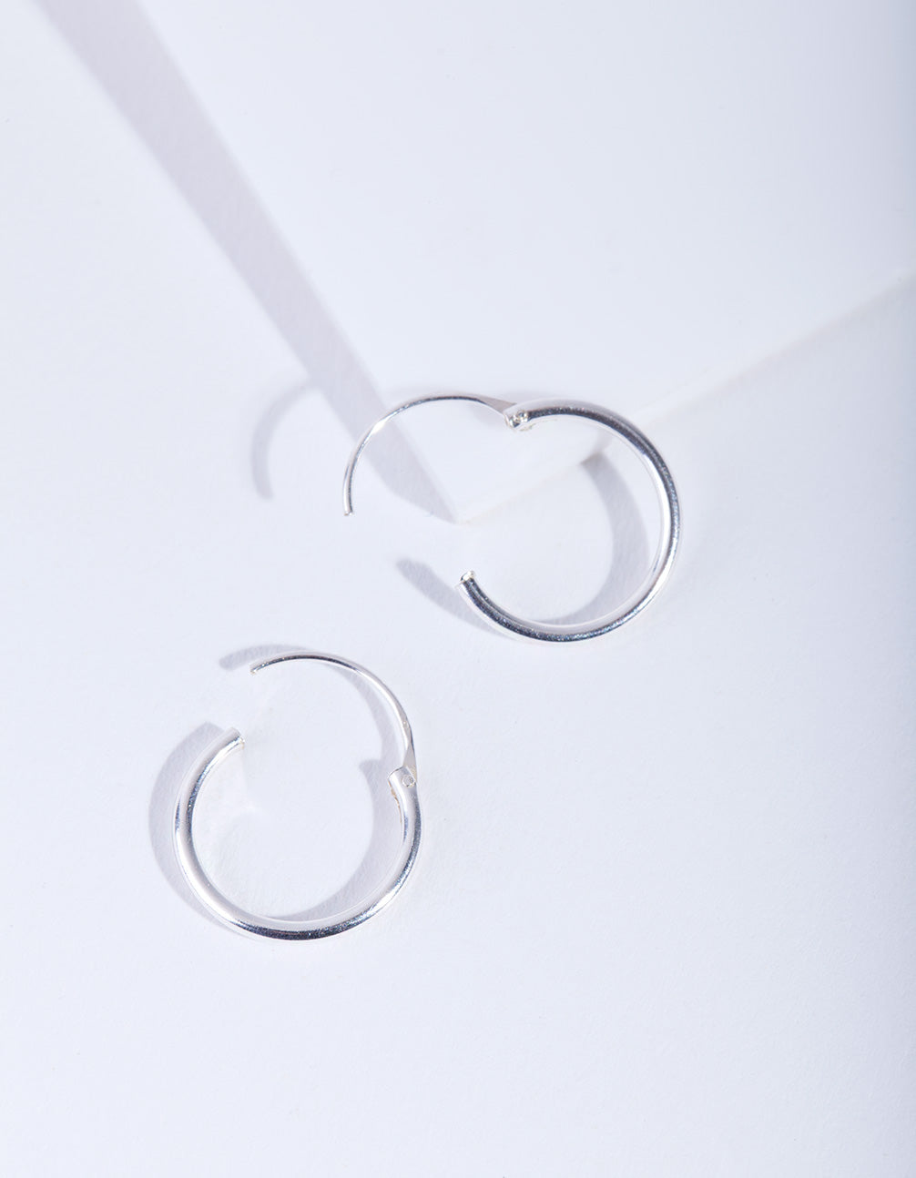 A pair of sterling silver hoop earrings with a classic polished design.