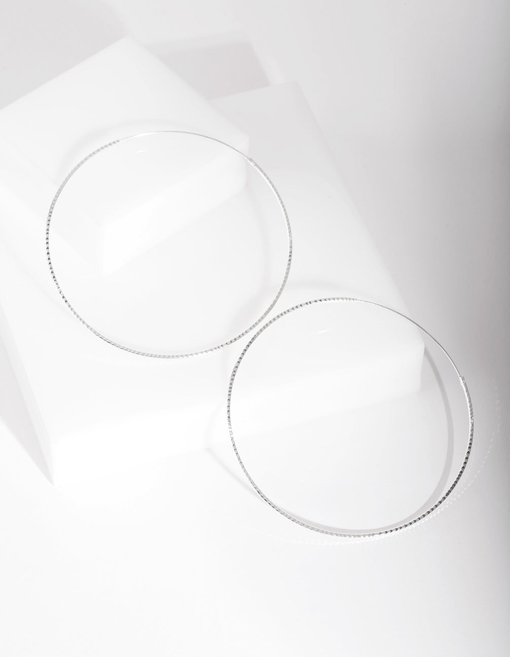 These sterling silver earrings boast a 60mm diacut hoop design. They are the perfect addition to any simple outfit.