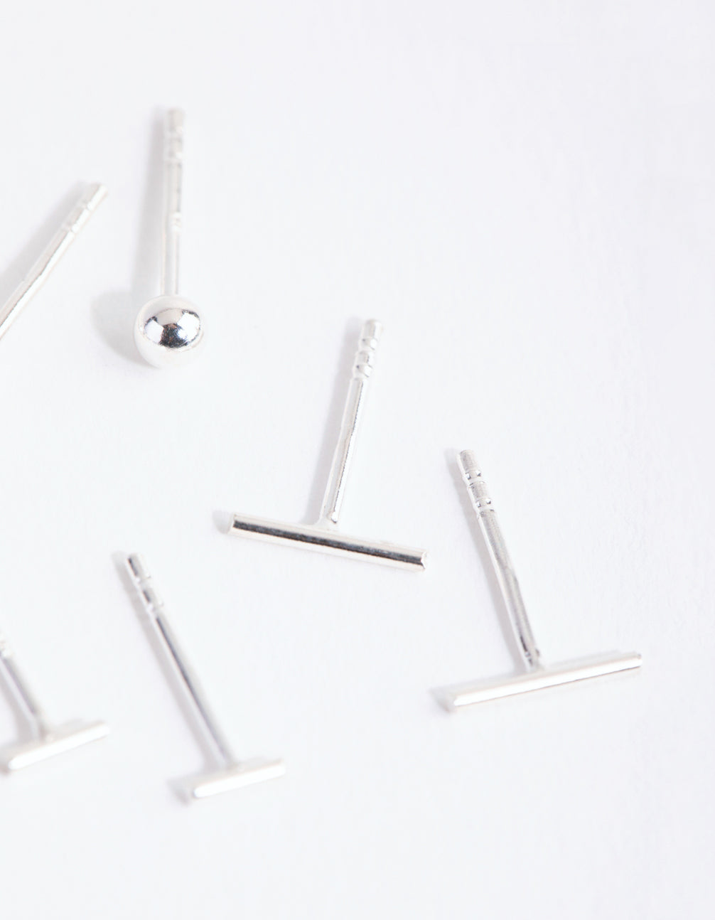A trio of sterling silver earrings with bar and polished ball designs.
