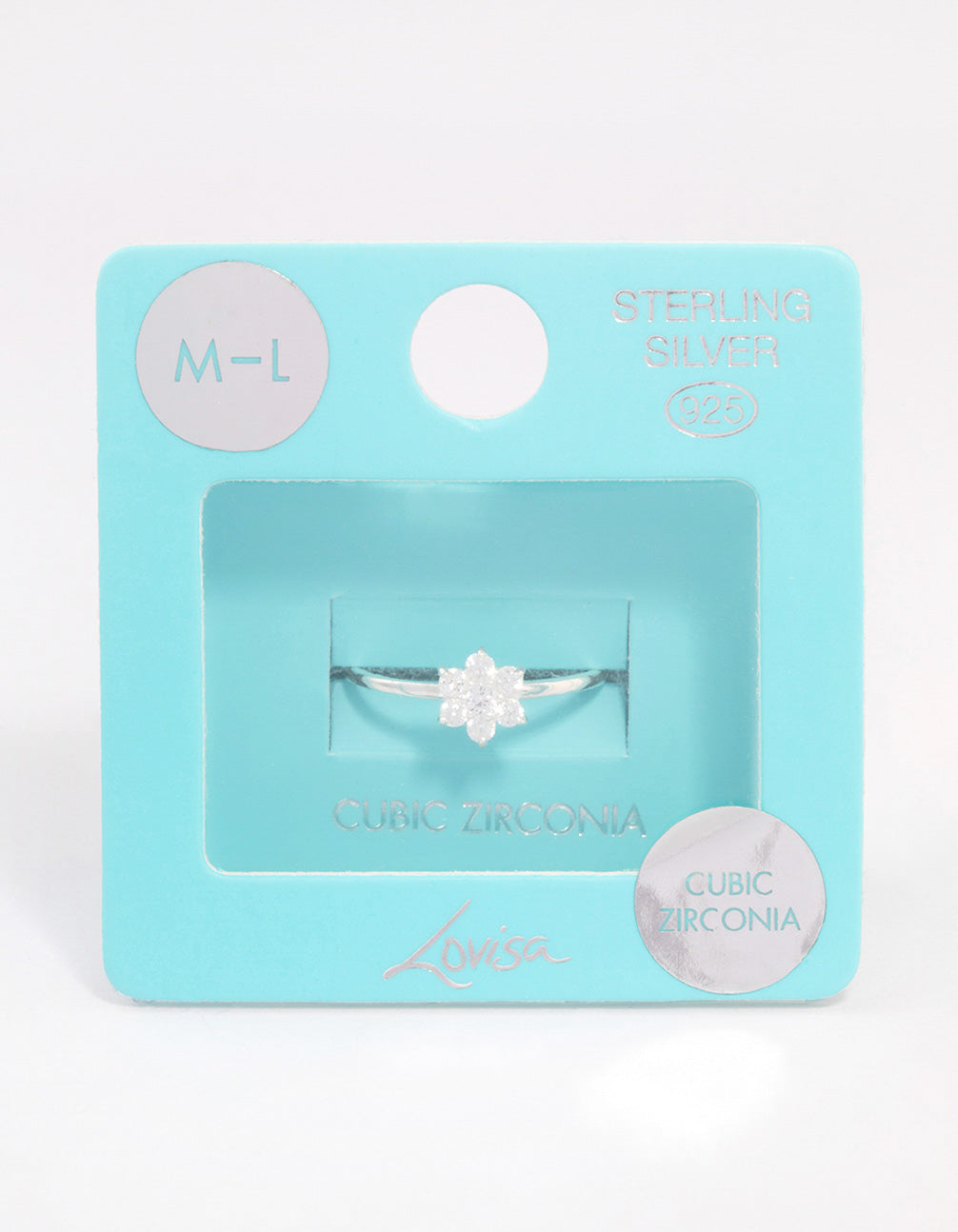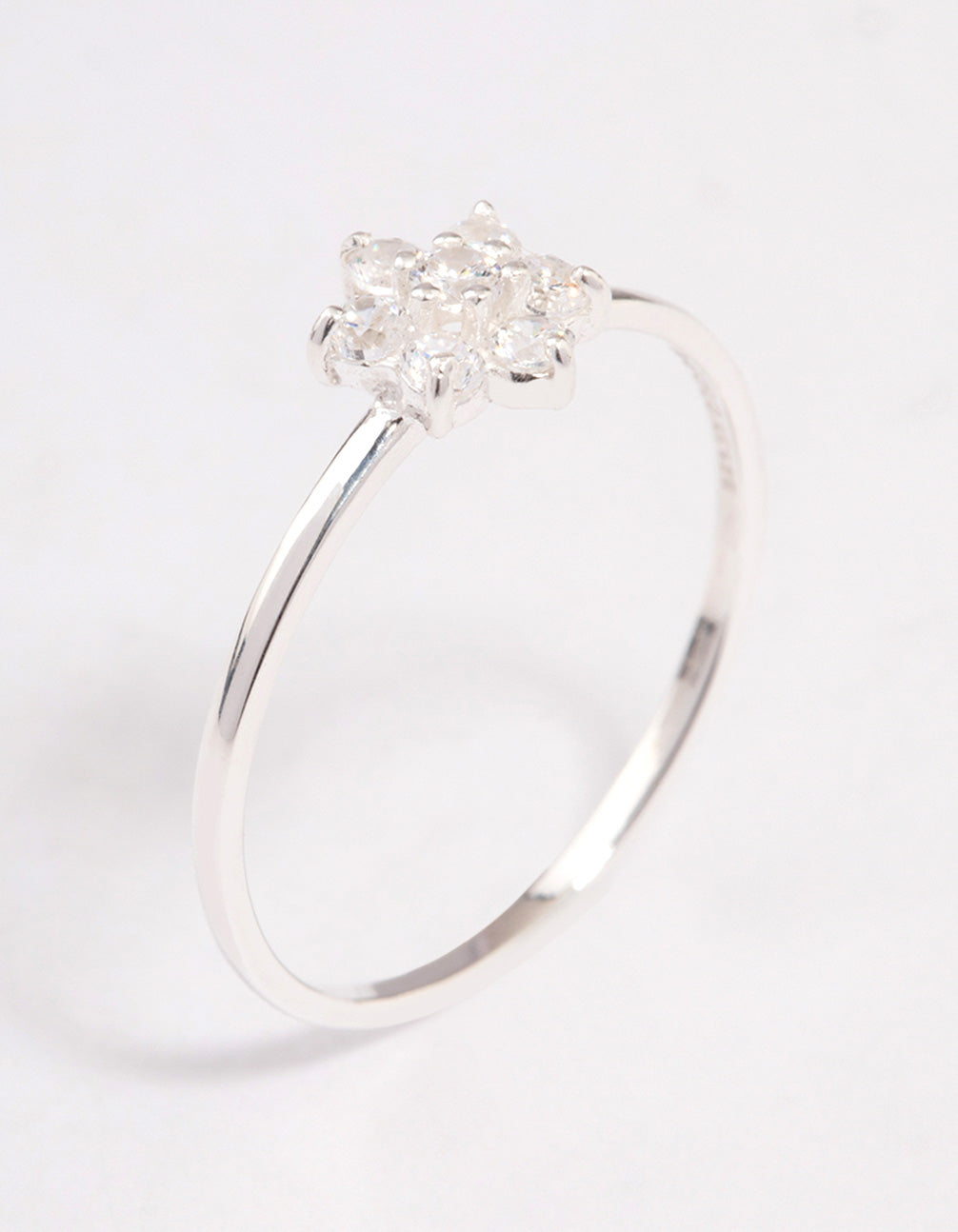 Sterling Silver Cubic Zirconia Daisy Flower Ring