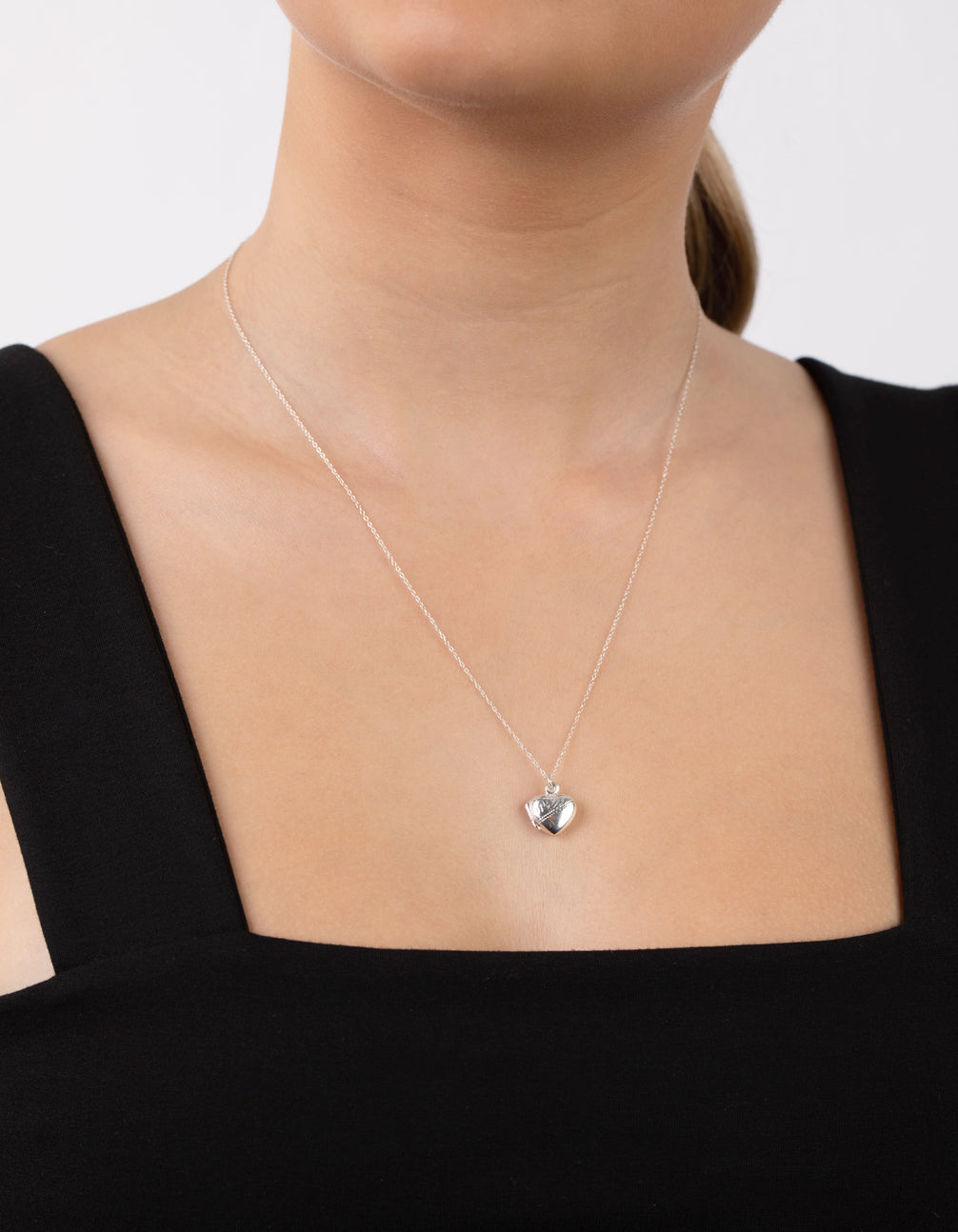 Keep your memories close with this heart locket pendant on a sterling silver chain.