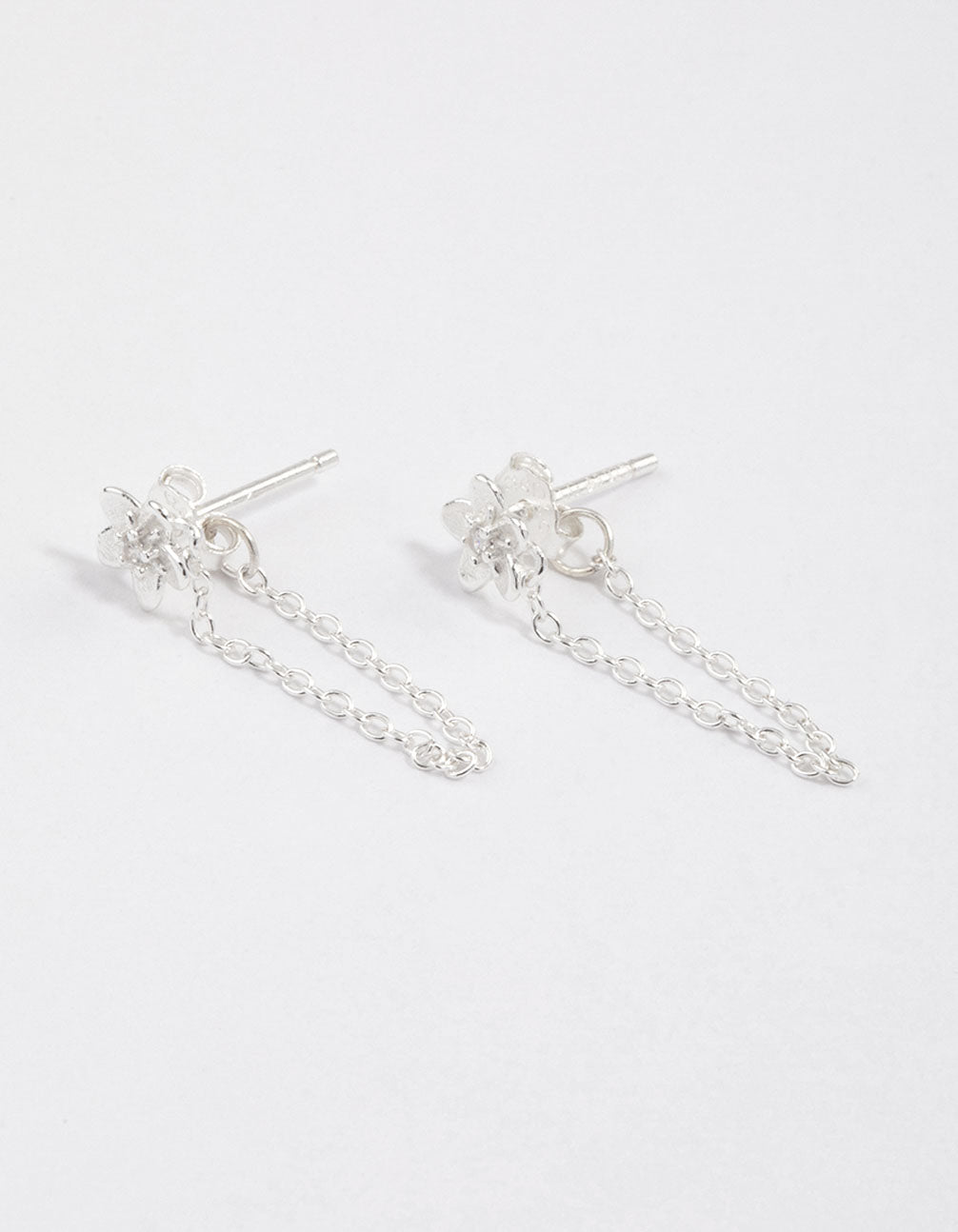 Style these Sterling Silver Flower Stud Chain Earrings with a set of huggie hoops for a curated finish.