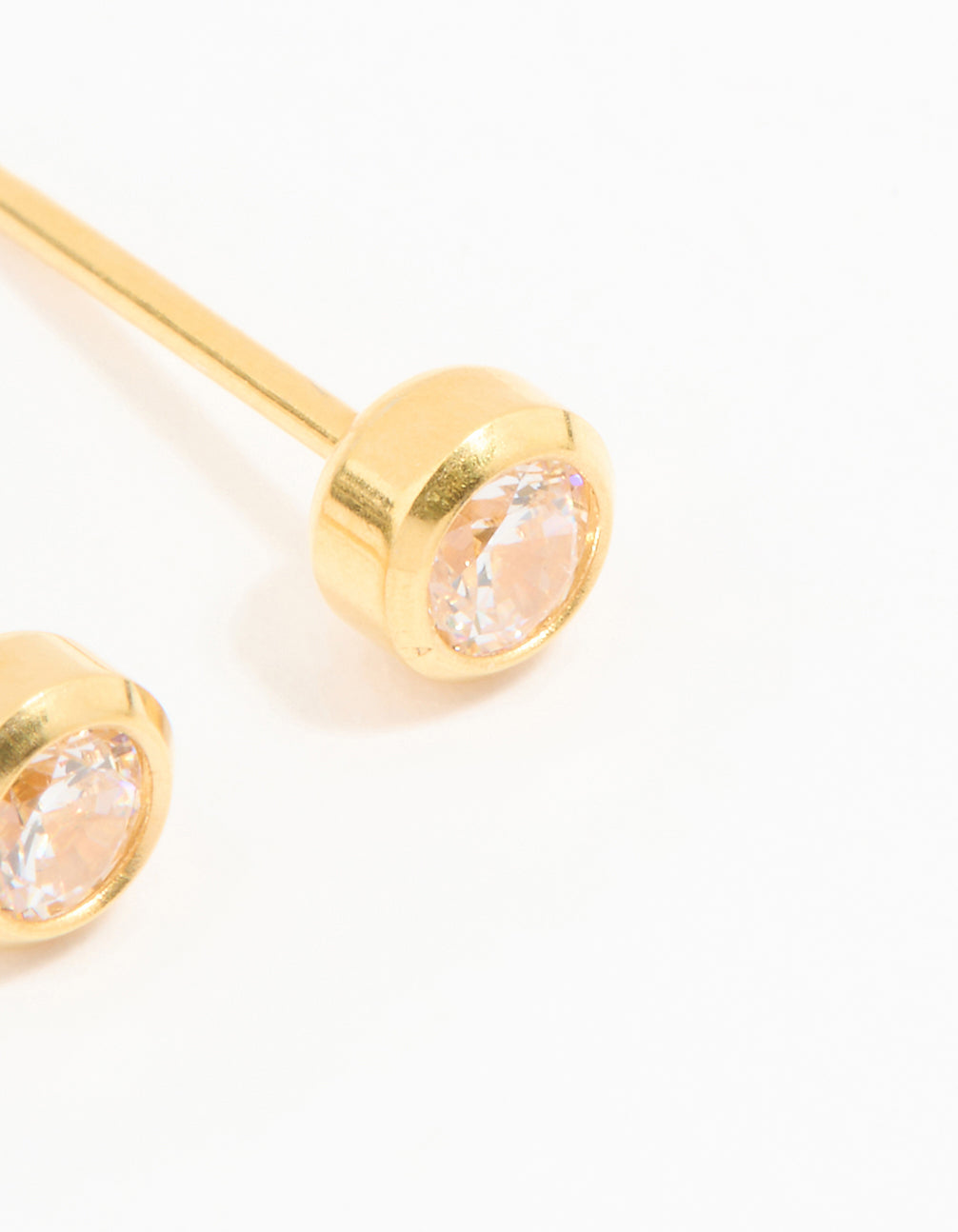 24KT Gold Plated Surgical Stainless Steel 3MM Cubic Zirconia Bezel Piercing Stud