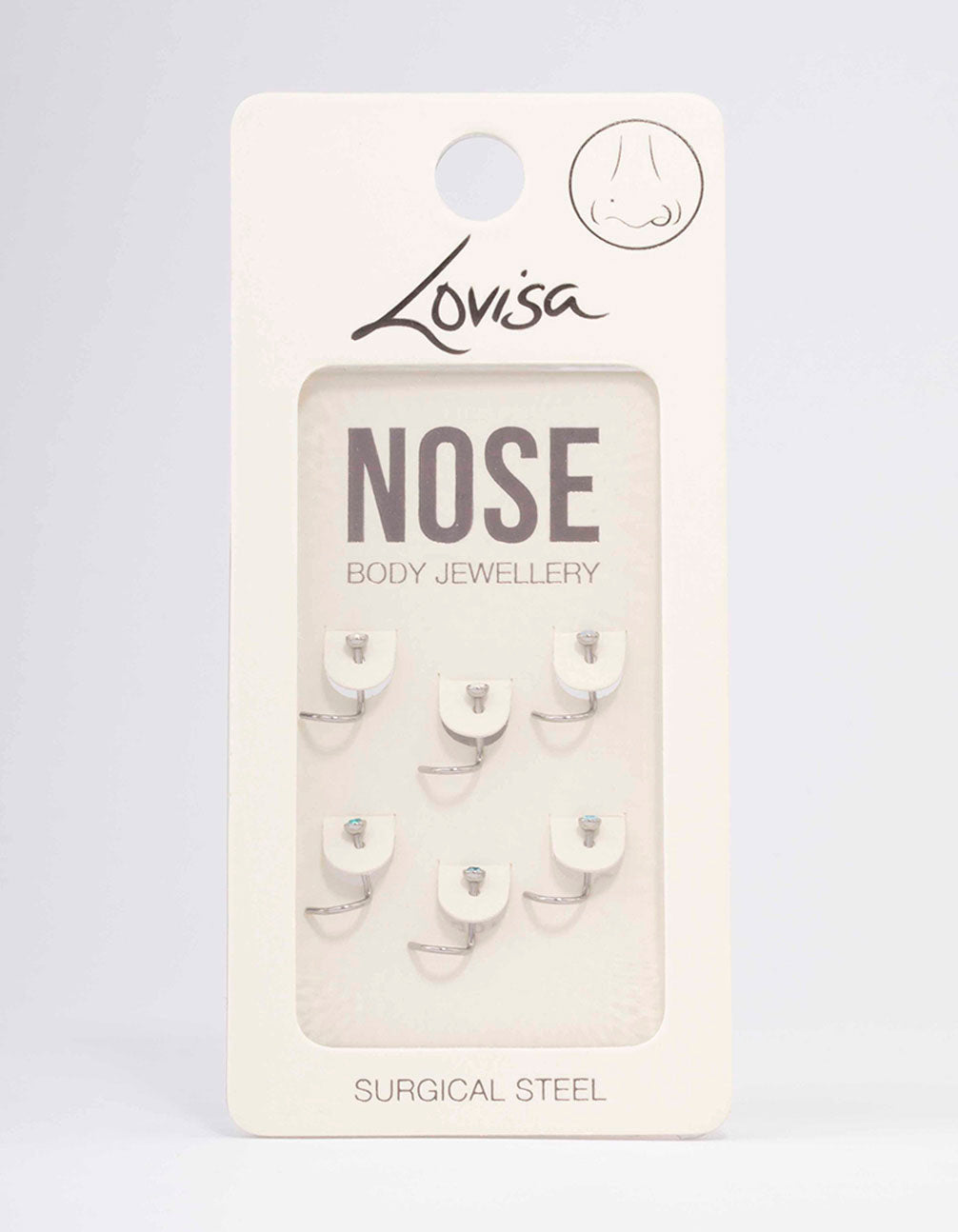 This pack of surgical steel nose piercings contains six individual nose studs, embellished with a mix of blue and crystal gems for a pop of colour.