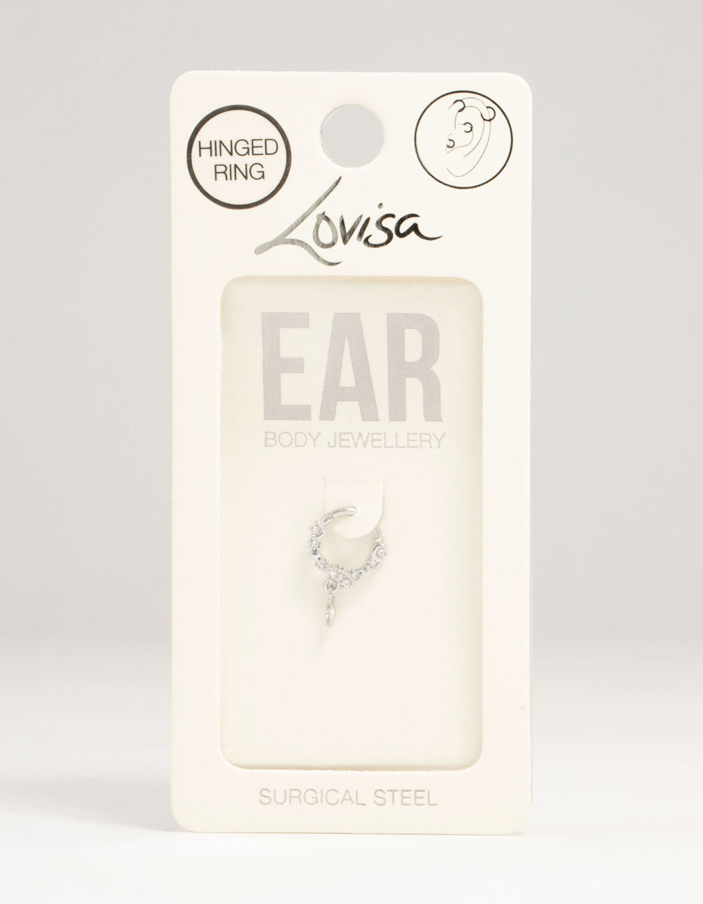 Elevate your look with this Surgical Steel Cubic Zirconia Celestial Drop Clicker Ring—your new go-to for cartilage piercings! This stunning clicker ring features a dreamy celestial design, with shimmering cubic zirconia drops that add a touch of sparkle to any outfit. Made from surgical steel, it's both durable and stylish, ensuring all-day comfort. Perfect for stacking with hoops or studs, this clicker ring is easy to wear and ideal for dressing up your everyday look or adding a little magic to a night out. Whether you're rocking a casual vibe or going full glam, this celestial-inspired jewellery will make you shine!