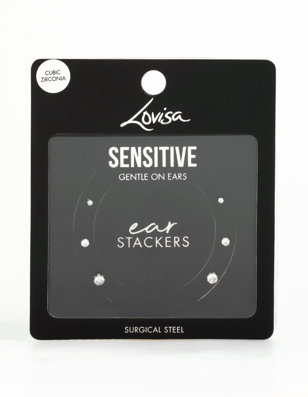 Add a touch of timeless sparkle with this Surgical Steel Cubic Zirconia Stud Earrings Pack, designed for sensitive ears. Featuring three pairs of dazzling cubic zirconia crystals in a chic graduated size, these stud earrings are perfect for mixing, matching, and layering. Made from durable surgical steel, they're gentle on the skin and ideal for all-day wear. Whether you're dressing up for a party or keeping it casual, these versatile studs pair beautifully with anything from jeans and a tee to your favourite dress. A must-have jewellery set for adding effortless elegance to any look!