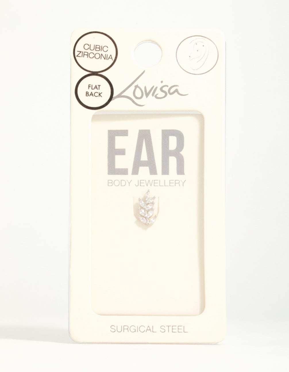Add a touch of elegance to your jewellery collection with this Surgical Steel Cubic Zirconia Vine Flatback Stud. Designed from surgical steel, this flat back stud is both durable and skin-friendly, perfect for sensitive ears. Featuring a delicate vine design adorned with sparkling cubic zirconia crystals, this stud brings a graceful yet modern vibe to any look. Ideal for cartilage, tragus, or lobe piercings, it's a versatile pick whether you're dressing up for a special occasion or keeping it chic for everyday wear. Pair it with simple hoops or stack with other flat back studs for a stylish, layered style. Comfortable, stylish, and easy to wear, this earring is a must-have for anyone who loves understated glamour.