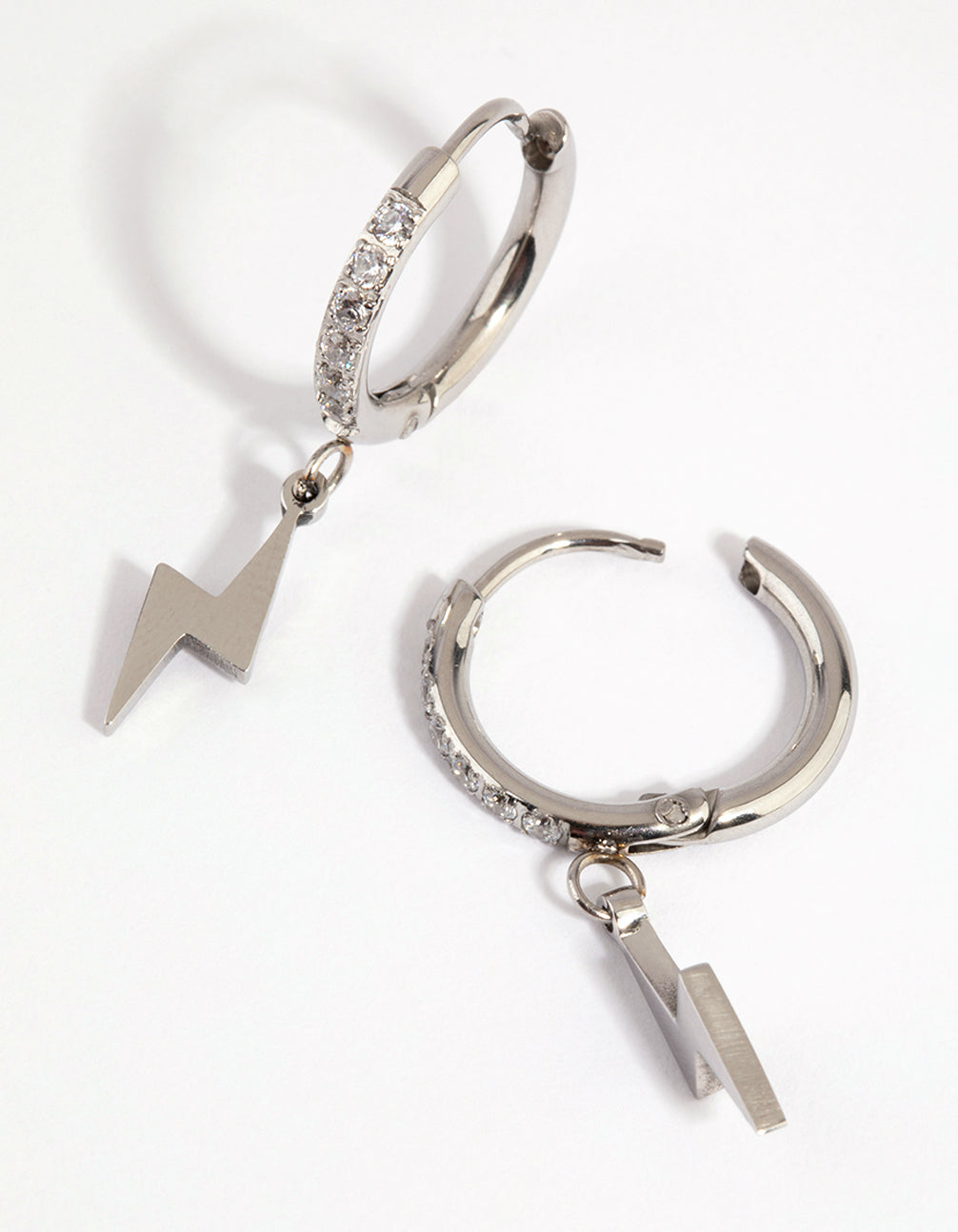 Designed with sensitive skin in mind, the Lovisa Sensitive Jewellery Collection utilises premium materials that reduce the risk of irritation. These earrings are made with surgical steel so they're gentle on skin. They feature a huggie design with lightning bolt charms. They're embellished with cubic zirconia for a touch of sparkle!
