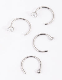 Surgical Steel Silver Martini Set Diamante Nose Ring 4-Pack