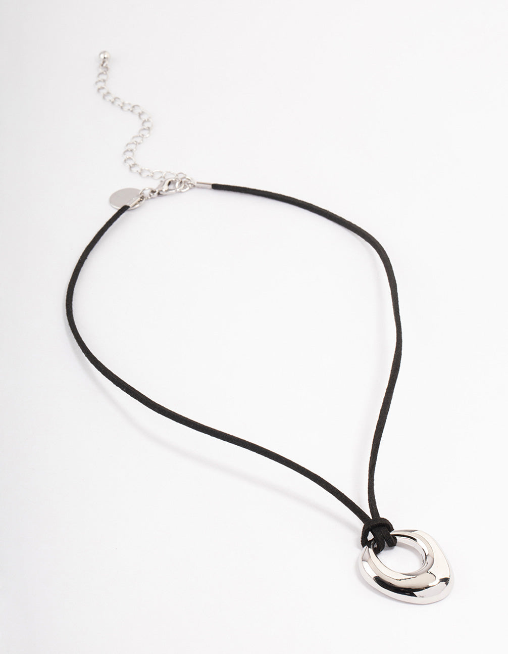 Silver Organic Oval Suede Cord Necklace