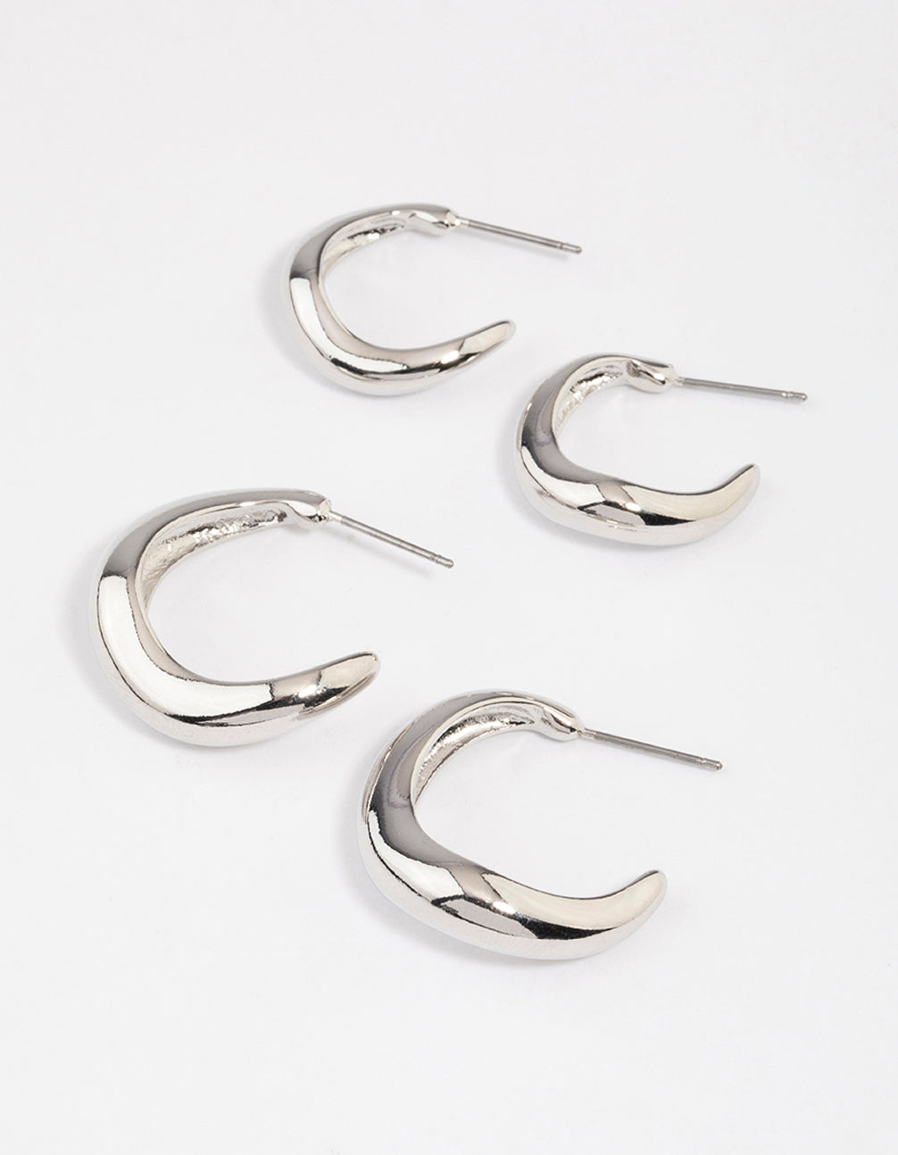 Th is earring pack contains two sets of rhodium hoop earrings. Layer them together for a curated look, or style them solo for a minimalist touch.