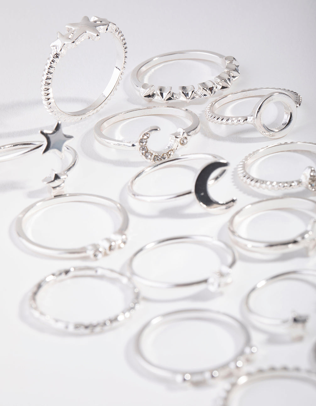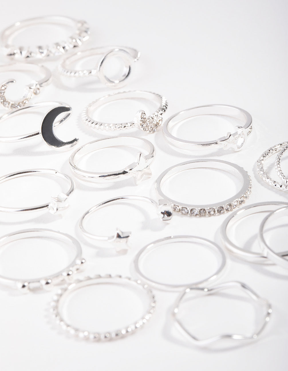 Stay ahead of the latest ring stacking trends with our multi ring stack packs. This stunning silver-toned pack features a celestial motif and will have you shining from day to night.