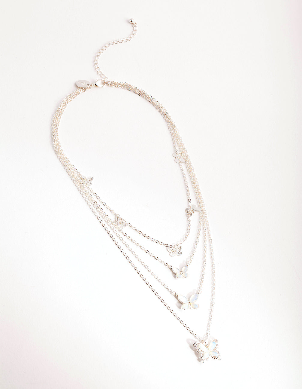 Curate a dreamy look with this stunning necklace. This silver-toned piece boast a four row chain and is adorned with beautiful butterfly charms. Pair with your favourite silver-toned jewellery for a truly ethereal ensemble.