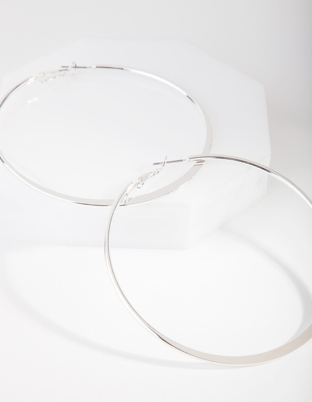 Silver Flat Edge 7cm Hoop Earrings Silver Flat Edge 7cm Hoop Earrings
